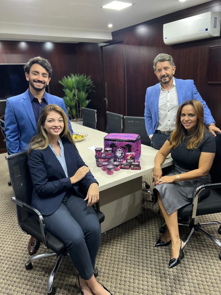 “Poder customizar o produto de acordo com a sua preferência e com o auxílio de equipamentos de autoatendimento é um diferencial do JAH Açaí, além da qualidade do insumos”, observa Sandra Campos, franqueada do quiosque do ParkShopping ao lado dos sócios Elies Soares, Eduardo Soares e Maria Eduarda Monteiro.