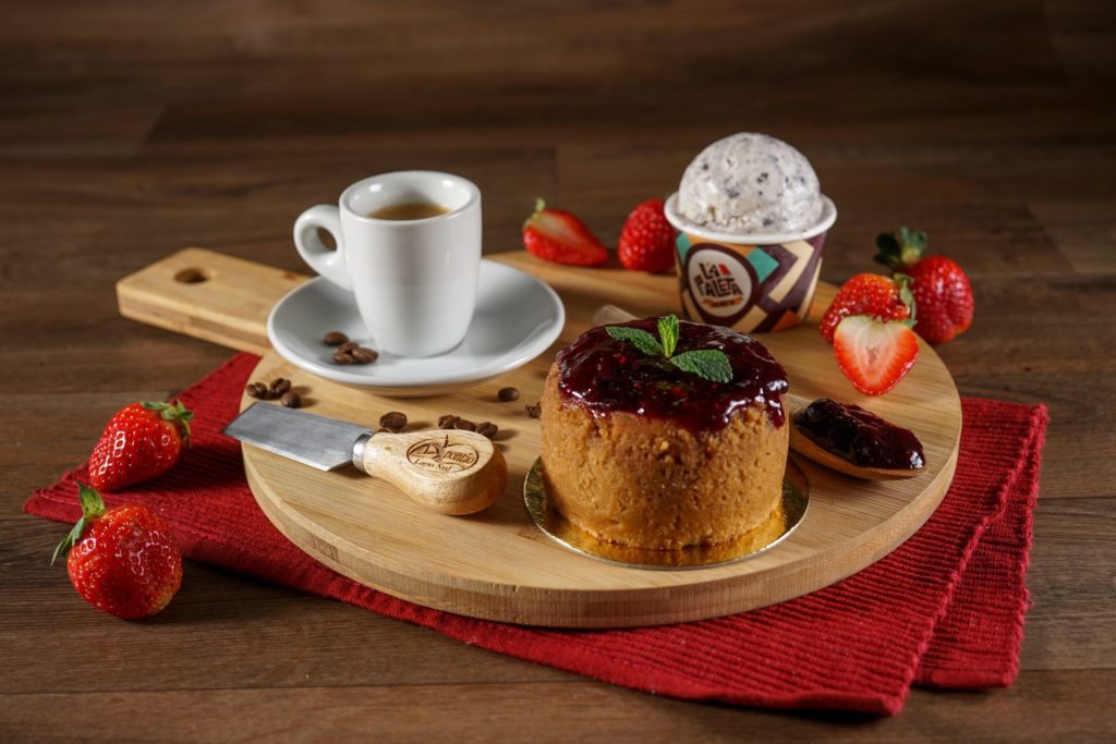 No La Paleta, a sugestão é Porção individual de cheesecake, servida com bola de sorvete e café expresso.