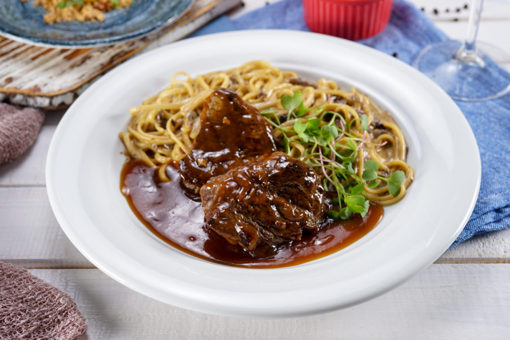 Entrada: Cappelletti in brodo. Cumbuquinha com sopa de massa recheada com carne. Principal: Filetto di Sallva. Escalope de filé com espaguete ao funghi. Sobremesa: Profiteroles de banana e doce de leite com paçoquinha. R$ 99,00.