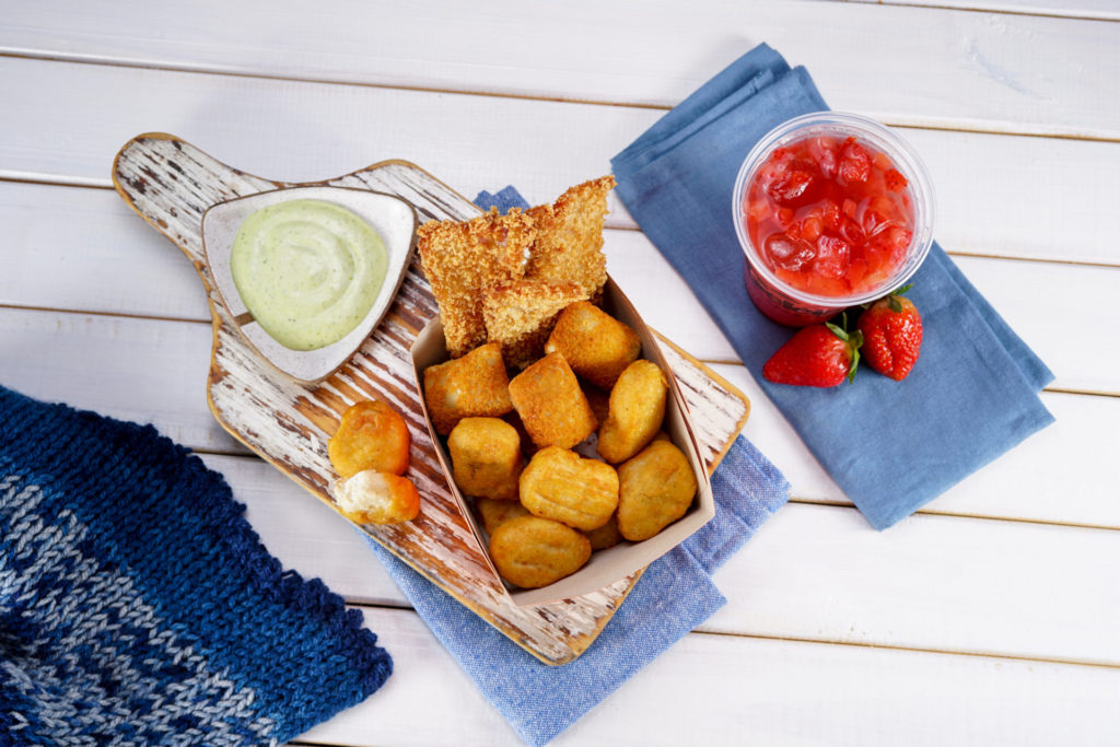 Fondue do Geléia com Limonada Pink. Bacon crocante e sequinho empanado, deliciosos nuggets de frango, pedacinhos de queijo gouda empanados e maionese verde artesanal. Acompanha uma Limonada Pink. R$ 49,00.
