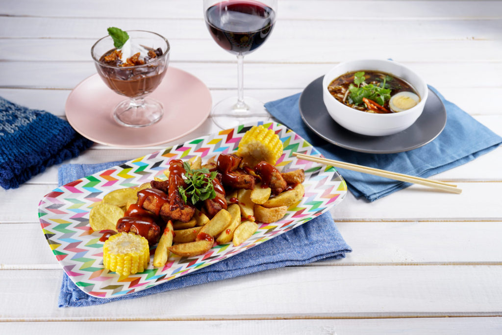 Entrada: Mini lamen same same but different (sopa asiática cheia de sabores). Prato principal: BBQ Same Same (costelinha desossada com molho barbecue da casa, servido com batata frita e lâminas de milho). Sobremesa: Mousse de chocolate com espuma de gengibre e calda quente crocante. R$ 89,00.