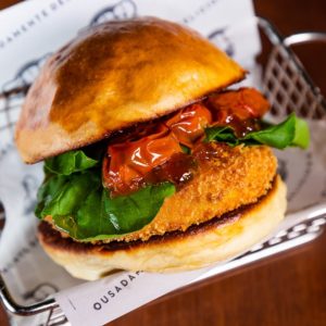 O burger vegetariano da casa também passou por uma reestilização e ganhou novos ingredientes. O Orlando (R$ 35,90) leva pão de cebola, queijo gouda empanado, tomate confit, rúcula e geleia de pimenta.