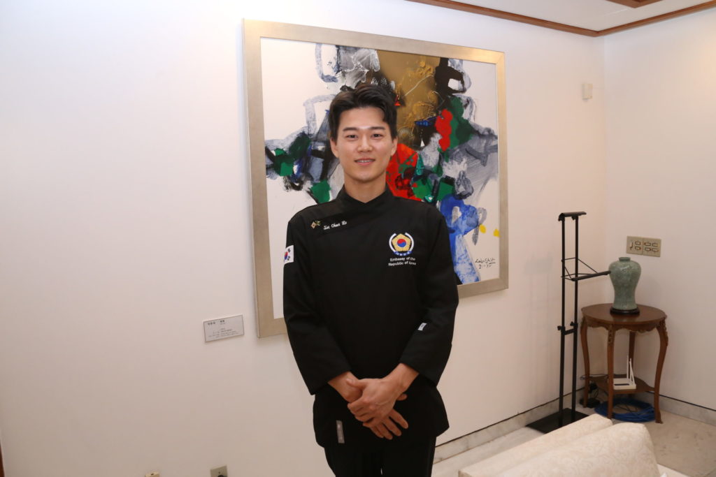 O chefe Jin Chan Ho foi o responsável pelo cardápio e mesmo sem falar português interagiu com os convidados e serviu vários pratos da culinária.