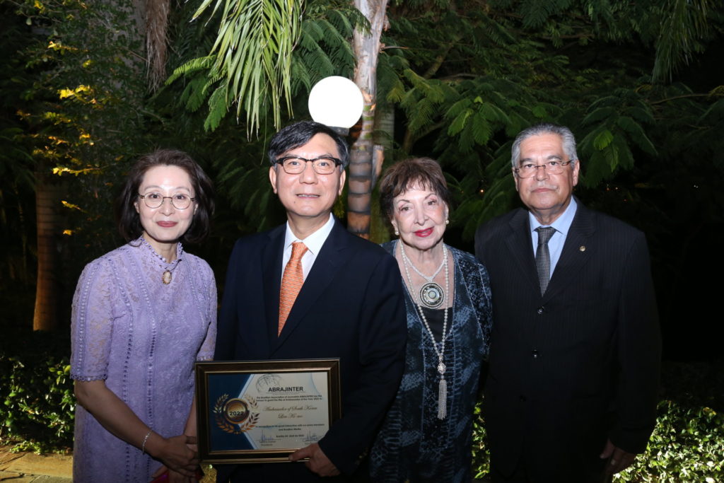 No final do evento, o Embaixador recebeu a placa de “Ambassador of the year 2022” devido a sua interação com a imprensa brasileira e com os membros da ABRAJINTER.