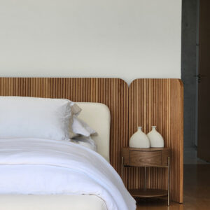 “O Rafael nos procurou no ano passado com a ideia de mobiliar alguns quartos para ajudar o visitante a visualizar melhor os espaços”, conta Michelle Turchi, empresária da Acervo. “Quando uma casa está vazia, a percepção pode ser enganosa. Ao inserirmos móveis, o cliente entende como os ambientes se integram e como o espaço pode ser realmente vivido.”
