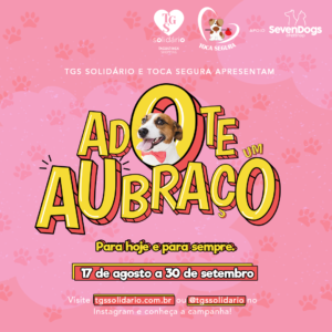 O TGS Solidário, em parceria com o abrigo Toca Segura, apresenta a campanha ‘Adote um Aubraço’. De forma totalmente on-line, entre os dias 17 de agosto e 30 de setembro, interessados poderão se candidatar a adotar um cachorrinho que precisa de um lar e, assim como nós, sente falta de ter alguém por perto.