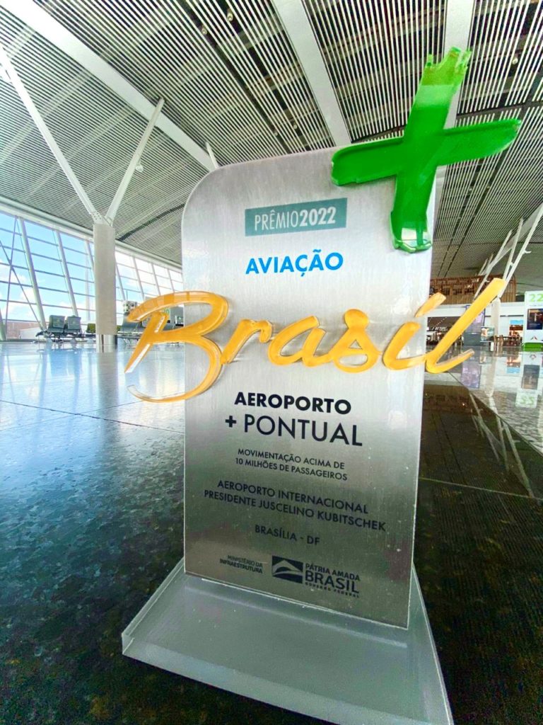 O Aeroporto de Brasília é o terminal aéreo mais pontual do país entre os aeroportos que operam mais de 10 milhões de passageiros por ano, segundo o Ministério da Infraestrutura. O aeroporto da capital federal foi premiado pelo órgão no evento Aeroportos + Brasil pela pontualidade das operações durante o ano de 2021.