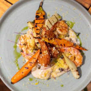 Para começar, entradas como Spicy Chicken Bites (asinha de frango frita com glaze de sriracha) e Croc de Camarão (camarões empanados com emulsões de wasabi, chimichurri e sriracha). Nos pratos principais, sugestões como o Gnocchi Baroa (Gnocchi de batata baroa com molho de queijos, camarão grelhado e raspas de gema curada), Caesar Salad (Tradicional caesar salad com queijo ralado e frango grelhado), Veggie Salad (Salada fria de grãos com avocado e molho), Steak Frites (Maminha, batata rústica com aioli de chimichurri e salada de beterraba com queijo de cabra), Hidden Bowl (Bowl de carne beef passion com creme de queijos coberto na massa de empanada), Grilled Salmon (Salmão grelhado com legumes orgânicos, purée de baroa defumado e granola salgada caseira) – foto destaque acima e Parmegiana Garden, clássica parmegiana com batata rústica.