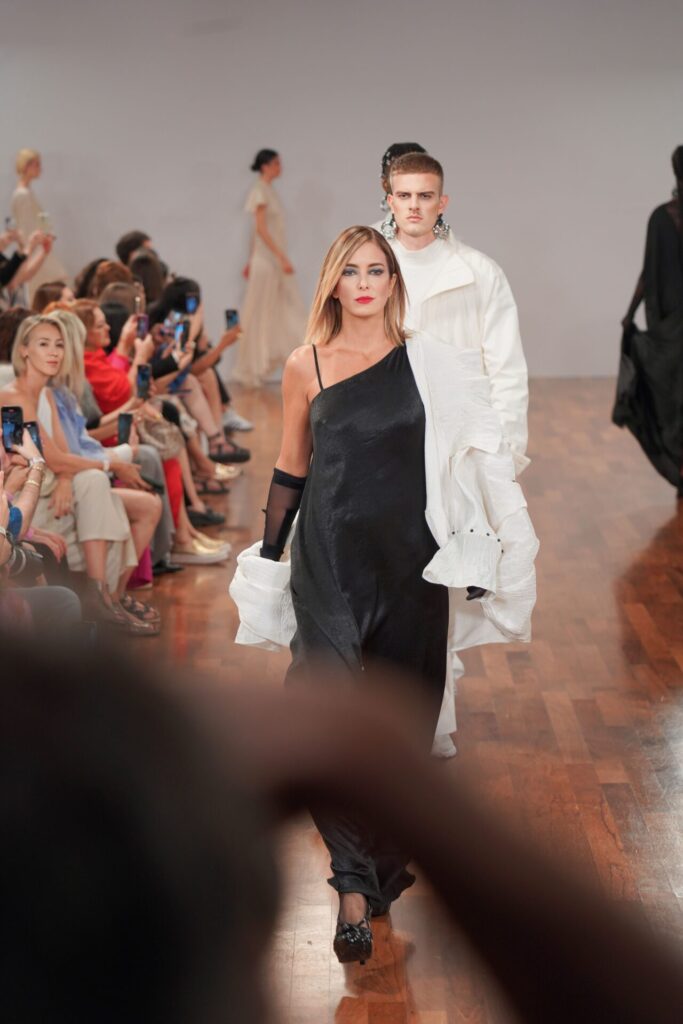 Após um hiato de 27 anos longe das passarelas, Ticiane Pinheiro surpreendeu a todos ao estrear no São Paulo Fashion Week (SPFW) na tarde da última quarta-feira (10). A apresentadora desfilou para o estilista Lino Villaventura na 57ª edição do evento, em um vestido preto com formas elaboradas, onde os bordados e aplicações resultaram em um desenho inteligente e tecnológico.