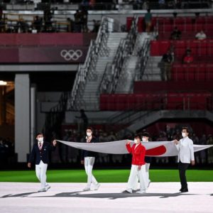 Ao contrário de duas semanas atrás, desta vez, mais gente se fez presente no gramado do estádio e em um clima mais festivo, talvez por alívio de ver que os Jogos tenham transcorrido sem mais percalços, apesar dos 436 casos de covid-19 contabilizados no Japão desde o dia 1º de julho entre as quase 52 mil pessoas credenciadas para os Jogos.