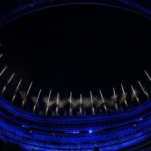 Depois dos shows, a cerimônia voltou à parte protocolar, com a execução do hino grego e o hasteamento da bandeira do país europeu. Também como uma novidade, os medalhistas da maratona, masculina e feminina, subiram ao pódio em meio a todo show e aos protocolos de encerramento.