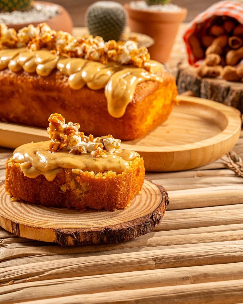 Bolo de milho servido com creme de caramelo e raspas de laranja (R$ 20,00), Bolo de mandioca e coco servido com creme de goiabada (R$ 20,00) e Caldo de milho com frango (R$ 20,00).