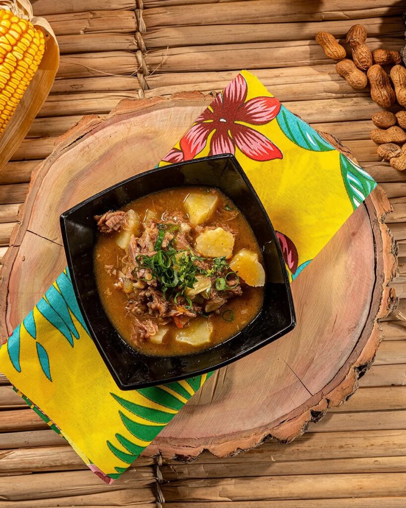 Vaca atolada (R$ 20,00) e Arroz de carreteiro (R$25,00).