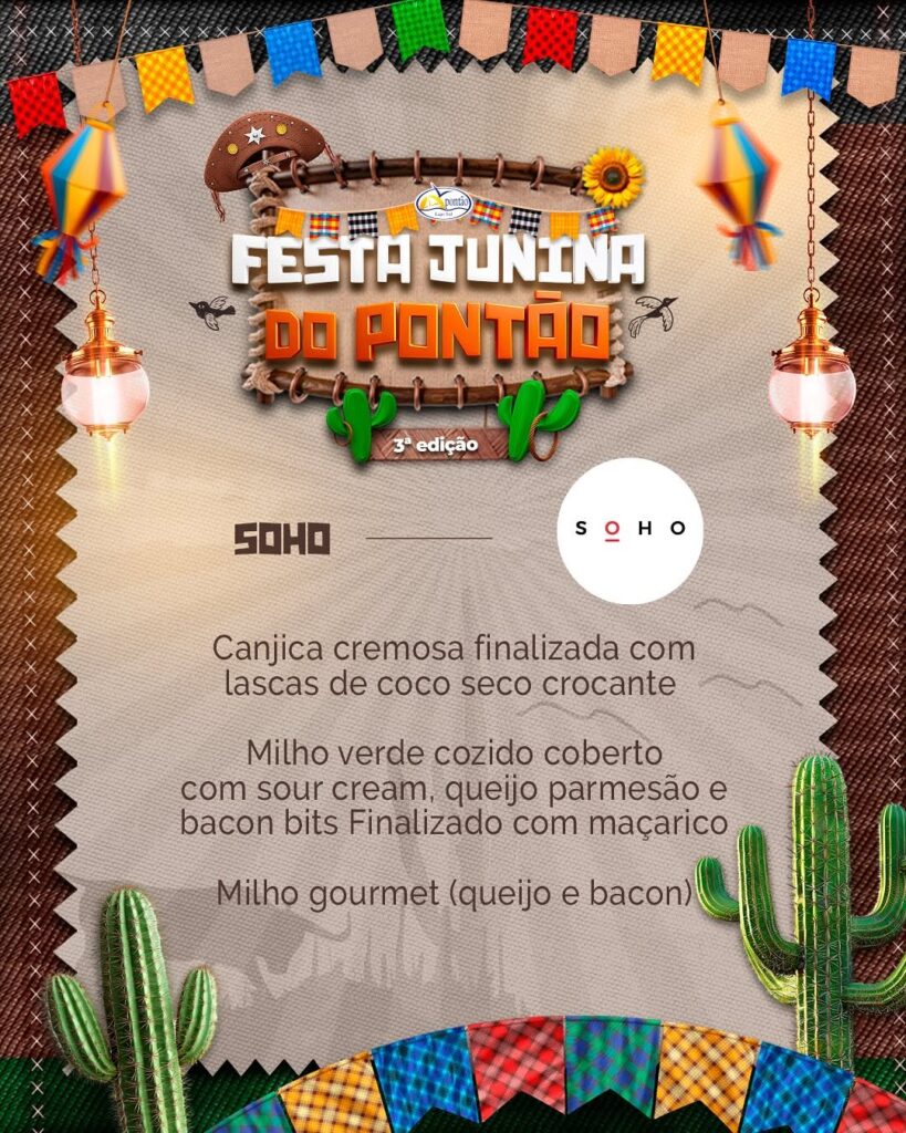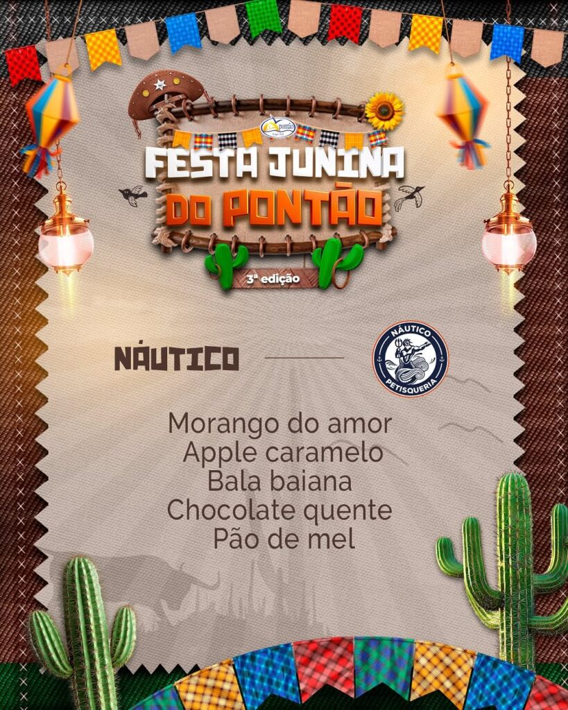 E como todo arraiá, a gastronomia é também protagonista. Na festa junina do Pontão, as opções são variadas e levam o preparo de chefs renomados da cidade.