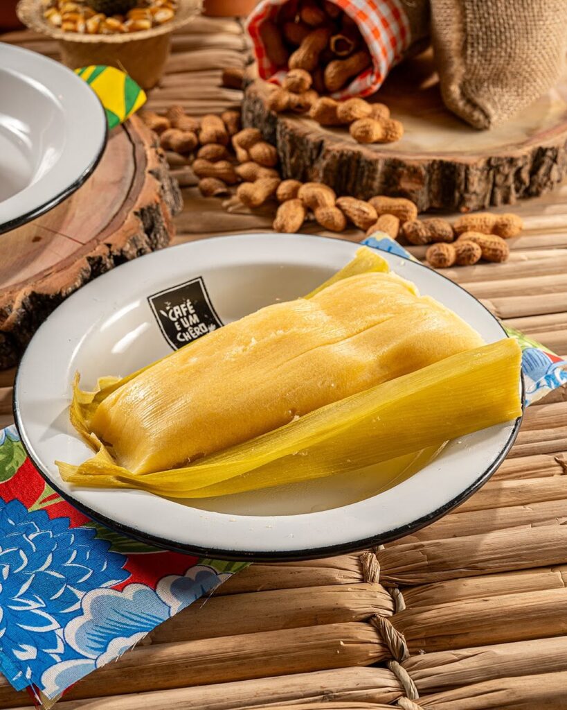 Coxinha (R$ 17,00), Pamonha doce (R$ 19,00), Pamonha salgada (R$ 19,00). Adicionais: maionese da casa, calda de goiabada e calda doce de leite. R$ 3,00 cada.