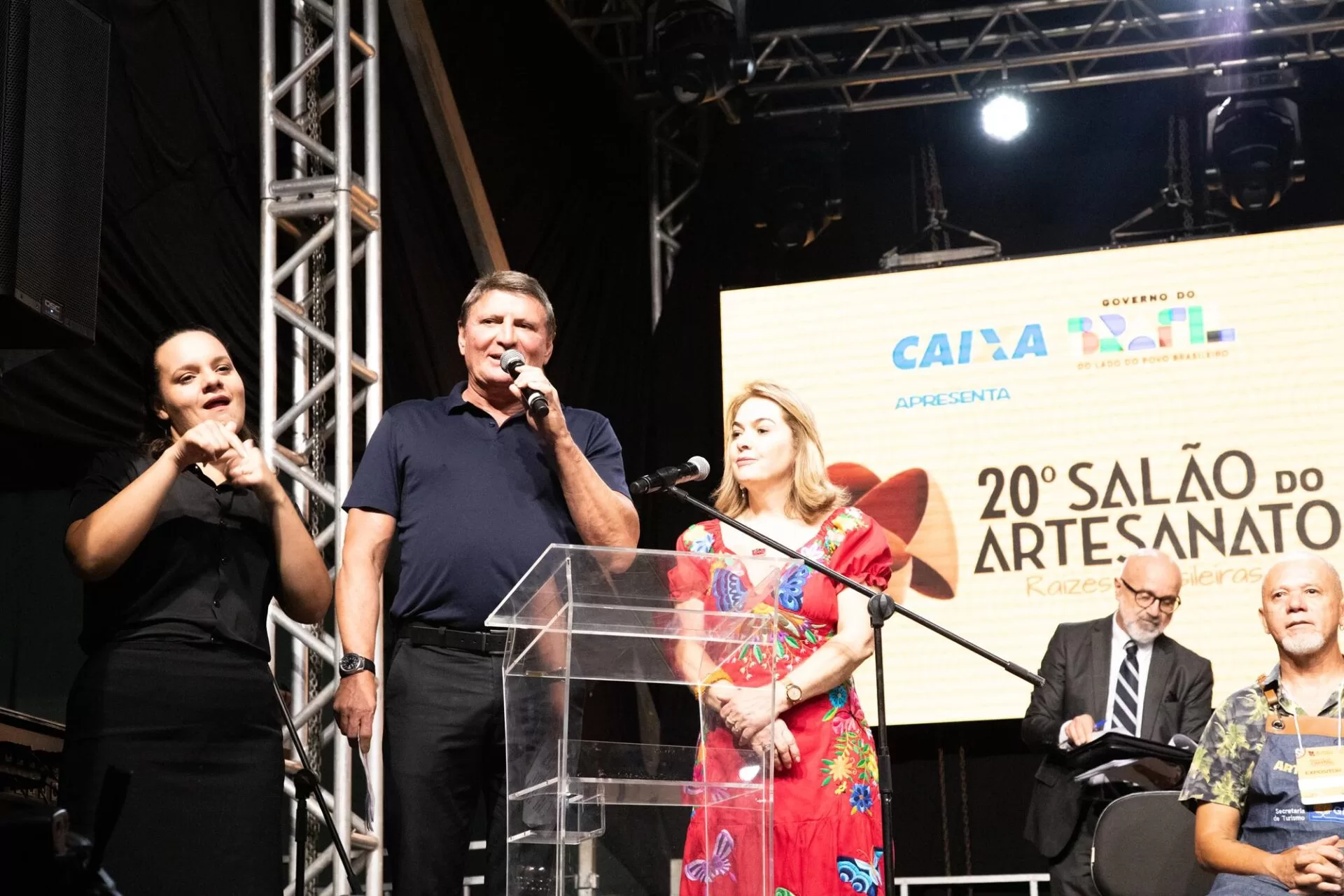 A abertura oficial do 20º Salão do Artesanato — Raízes Brasileiras reuniu autoridades, artesãos, convidados e grande público na noite da última quarta-feira, dia 5 de novembro, marcando o início de mais uma edição dedicada ao artesanato brasileiro, a joia da cultura brasileira. À frente da realização, Rômulo Mendonça e Leda Alves, da Rome Eventos, receberam os convidados para a solenidade, que destacou o papel do Salão como espaço de circulação de saberes, fortalecimento econômico e valorização de identidades tradicionais e contemporâneas.