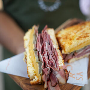 Entre os sanduíches, Almería (presunto cru espanhol com 15 meses de maturação. Abobrinha marinada, queijo ementhal e rúcula); Tagliata (rosbife de mignon, lascas de parmesão, folhas de rúcula e maionese de mostarda dijon); Mortadela (foccacia, mortadela italiana, pesto de manjericão e coalhada seca da casa); Pastrami (pastrami produzido na casa, picles, maionese cítrica e mostarda dijon); Croque Monsier (presunto royal, queijo gruyere, parmesão, molho bechamel e mostarda dijon); Croque Madame (presunto royal, queijo gruyere, parmesão, molho bechamel, mostarda dijon e ovo estalado com gema mole).