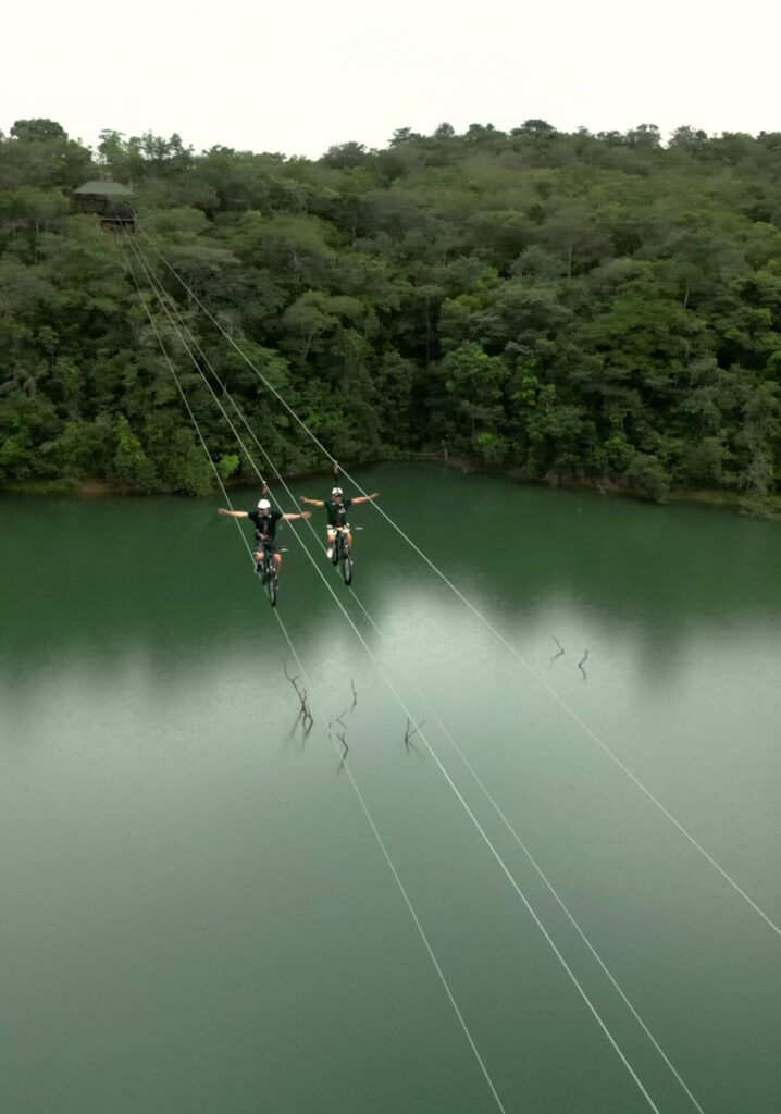 A primeira tirolesa de bike do Centro-Oeste terá 290 metros de extensão, cruzando o Lago Corumbá e proporciona uma vista privilegiada para quem gosta de aventuras