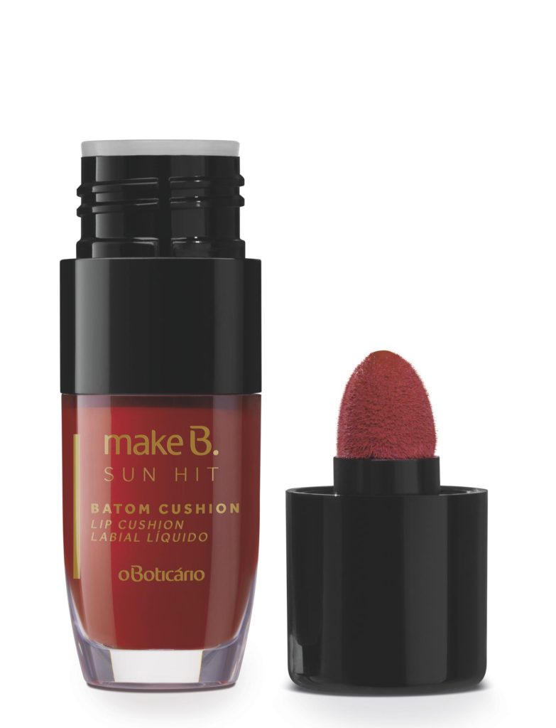 A “cushion fever” é tanta entre os boti lovers, que a linha Make B. Sun Hit ganhou uma coleção de batons líquidos cushion, que combinam óleos nutritivos e poderosos com um aplicador macio para trazer um toque de cor e brilho nos lábios. O Batom Líquido Cushion é multifuncional, proporciona efeito mais natural aos lábios e pode ser usado nas bochechas como blush. Ele conta com cinco opções de cores: Red, Orange, Rose, Pink e Nude. Ou seja, é um coringa para todas as ocasiões.