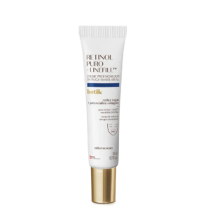 Retinol Puro + Linefill™é um produto de uso localizado para dupla ação redutora na linha de expressão que vai do nariz ao canto da boca. Enquanto o retinol puro atua potencializando o colágeno na região, o Linefill™atua no preenchimento da pele. Melhora a firmeza da região a partir dos 10 dias de uso e reduz visivelmente a ruga nasolabial em até quatro semanas.
