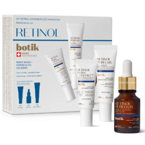 Possui um Gel Creme Redutor de Rugas de 10ml, um Sérum de Alta Potência Facial com 0,3% de retinol puro Botik de 15ml e Creme Preenchedor da ruga nasolabial de 5ml. É uma super oportunidade para testar todos os produtos de cuidados faciais, são todos os produtos da linha em versões menores, sendo ótimo para levar como kit de viagem.