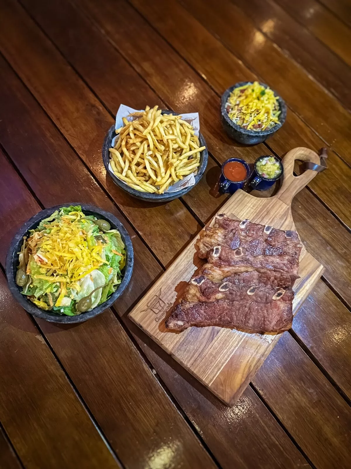 O protagonista do dia será o Assado de Tira (750g), robusto e suculento, servido com três acompanhamentos que combinam tradição e conforto: o famoso Arroz da Fazenda, a Salada Juliana e batatas crocantes. Tudo isso, harmonizado com molhos autorais e pensado para dividir — afinal, o melhor da comida está no encontro. O prato custa R$375 e serve de três a quatro pessoas.