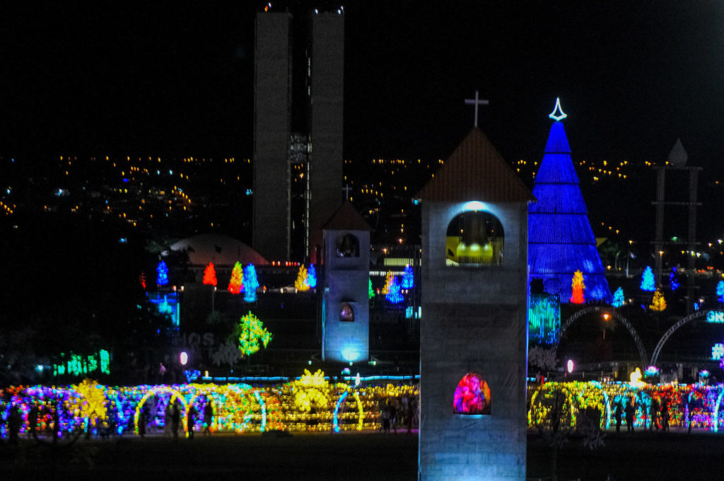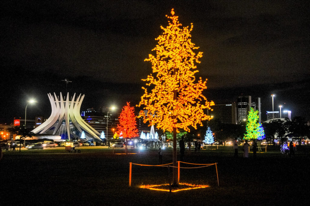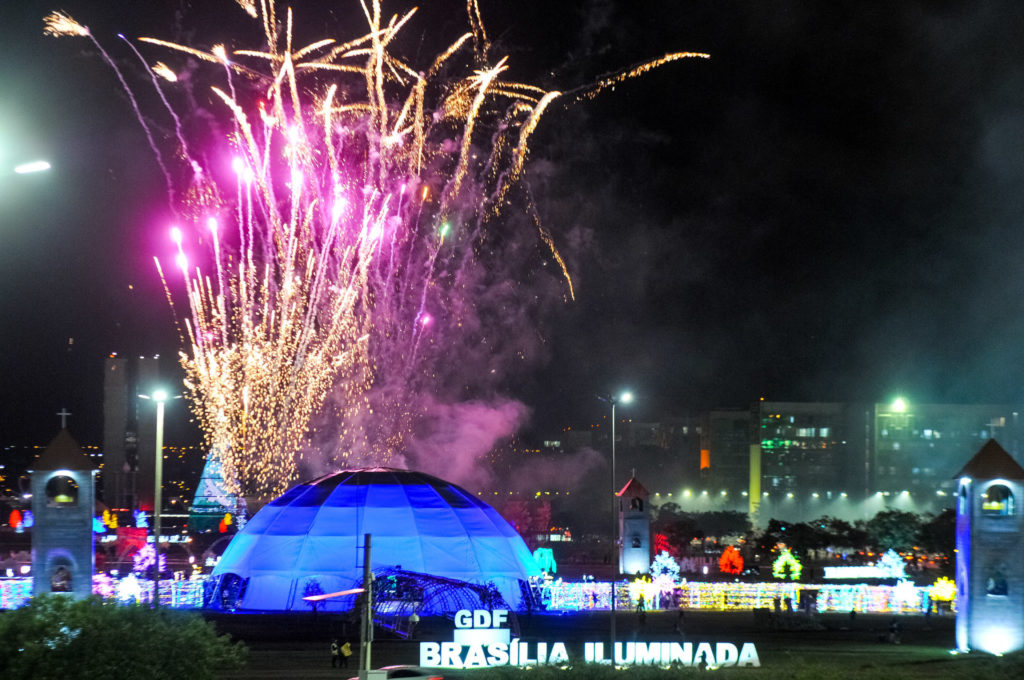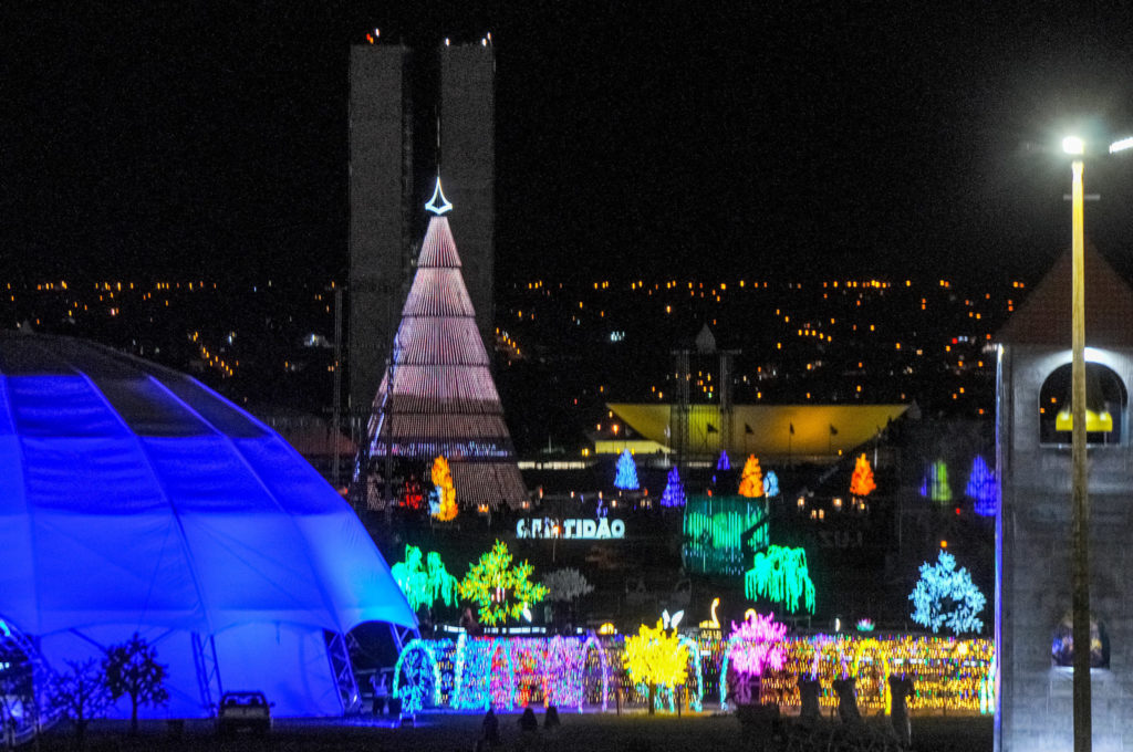 O espetáculo das luzes de Natal foi aberto nesta quarta-feira (22), no Eixo Monumental, região central de Brasília. A decoração luminosa que ocupa 415.770 metros quadrados foi acesa em cerimônia ao lado do Palácio do Buriti. É o projeto Brasília Iluminada que, em sua segunda edição, pode ser conferido por moradores do Distrito Federal e turistas até o dia 20 de janeiro.