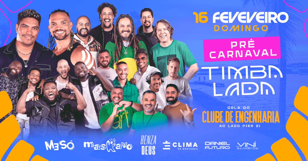 A contagem regressiva para o Carnaval começou e quem diz que Brasília não sabe fazer folia está errado! Tanto que, para os brasilienses já entrarem no clima da festança, produtores da cidade vão promover um esquenta com nada mais nada menos que Timbalada, no dia 16 de fevereiro, domingo, na Orla do Clube de Engenharia, a partir das 15h.