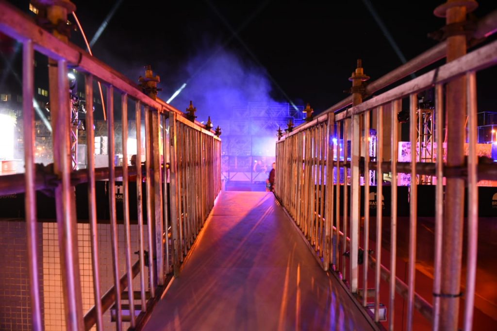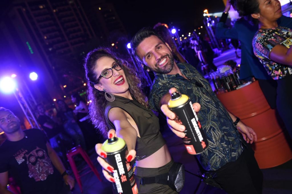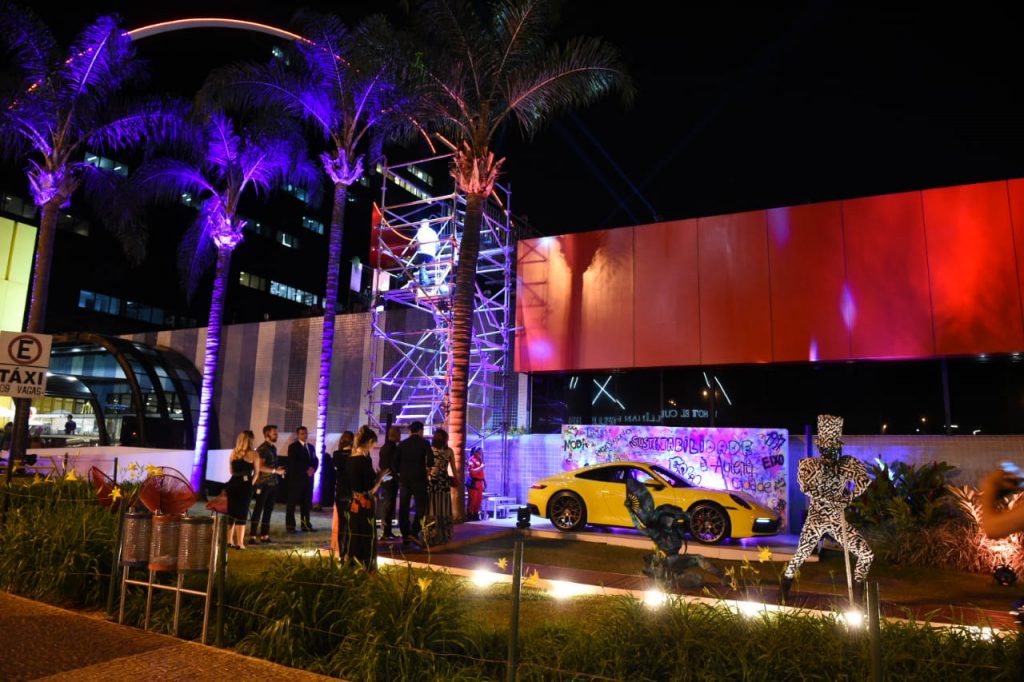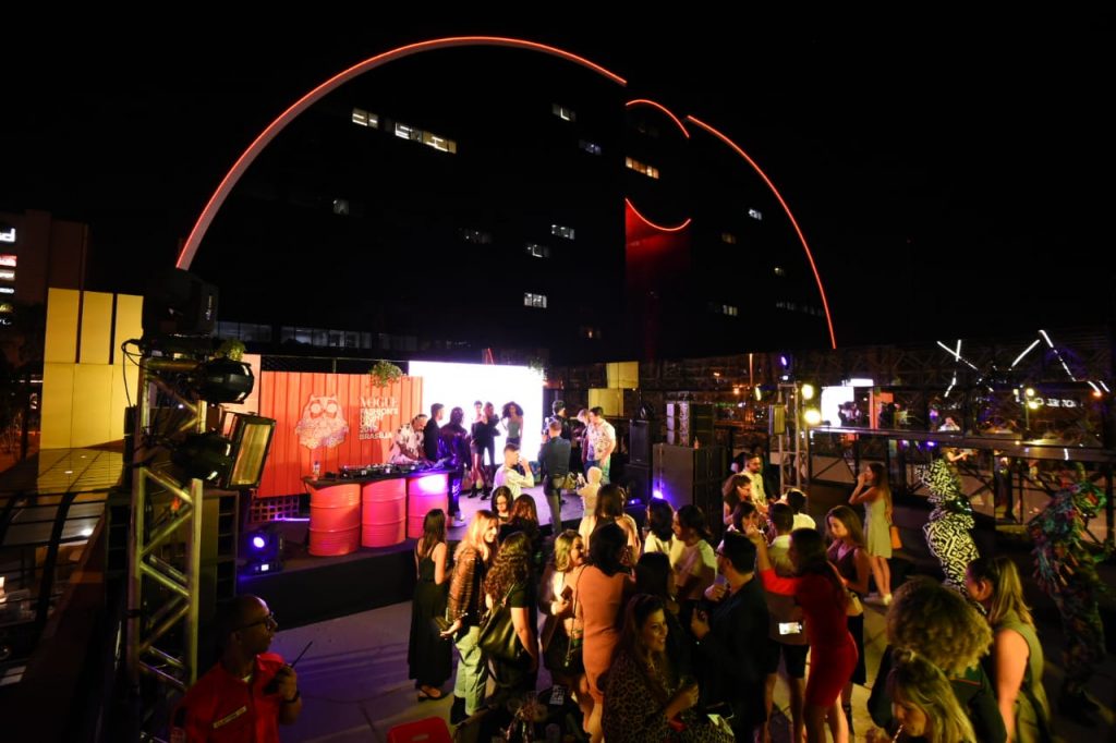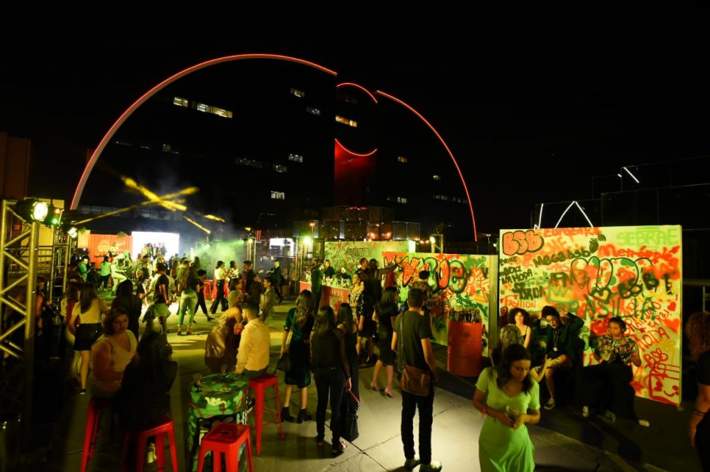 O rooftop do Brasília Shopping foi palco de celebração do preview VFNO 2019. Todos os convidados não imaginavam onde seria a festa. Já ao lado da entrada lateral do mall, uma escada instalada com posers e cenografia street com um porsch amarelo para fotos com fashionistas da capital. No espaço da festa, os convidados poderiam grafitar mensagens e fazer a suas artes no mural. No bar, dois drinks e espumantes Aurora em parceria com a Sparkling Wine Fair, eram brindados ao longo da noite ao som do DJ A.