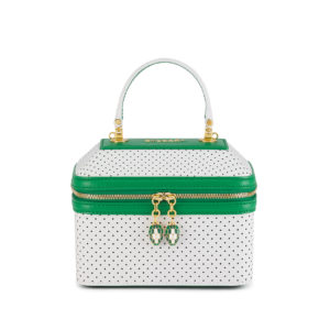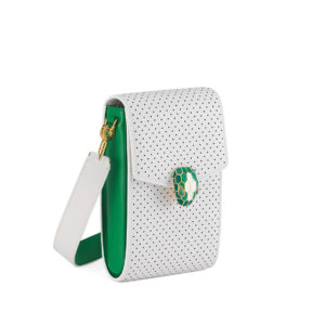 Dividida em dois lançamentos, a coleção de 7 peças conduz através dos principais mundos de inspiração da Casablanca: o esporte com o Après Tennis Story e o patrimônio artístico com o Mosaic Story. Inspirado nos estilos clássicos de tênis e elementos de design gráfico, para a primeira história, Casablanca eleva o visual do après sport jogando sobre o contraste icônico entre um fundo branco e toques de verde. A mistura única de couro perfurado branco, ferragens douradas e alças de madeira inéditas refere-se imediatamente ao equipamento, ao clima, às cores, aos detalhes, ao visual e à estética elegante do mundo do tênis.