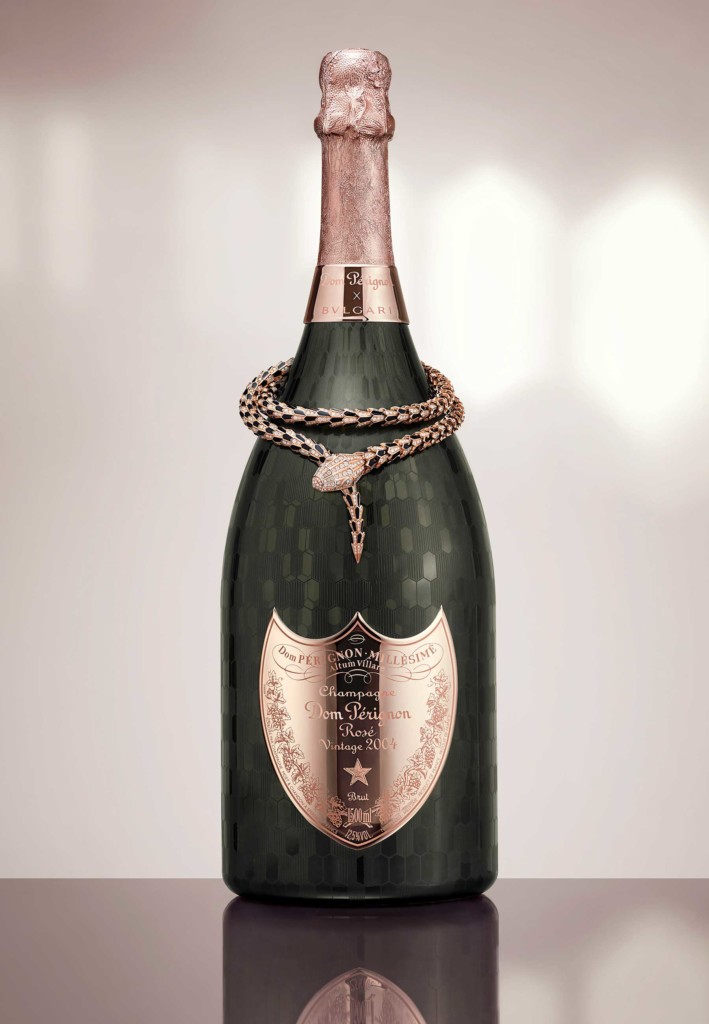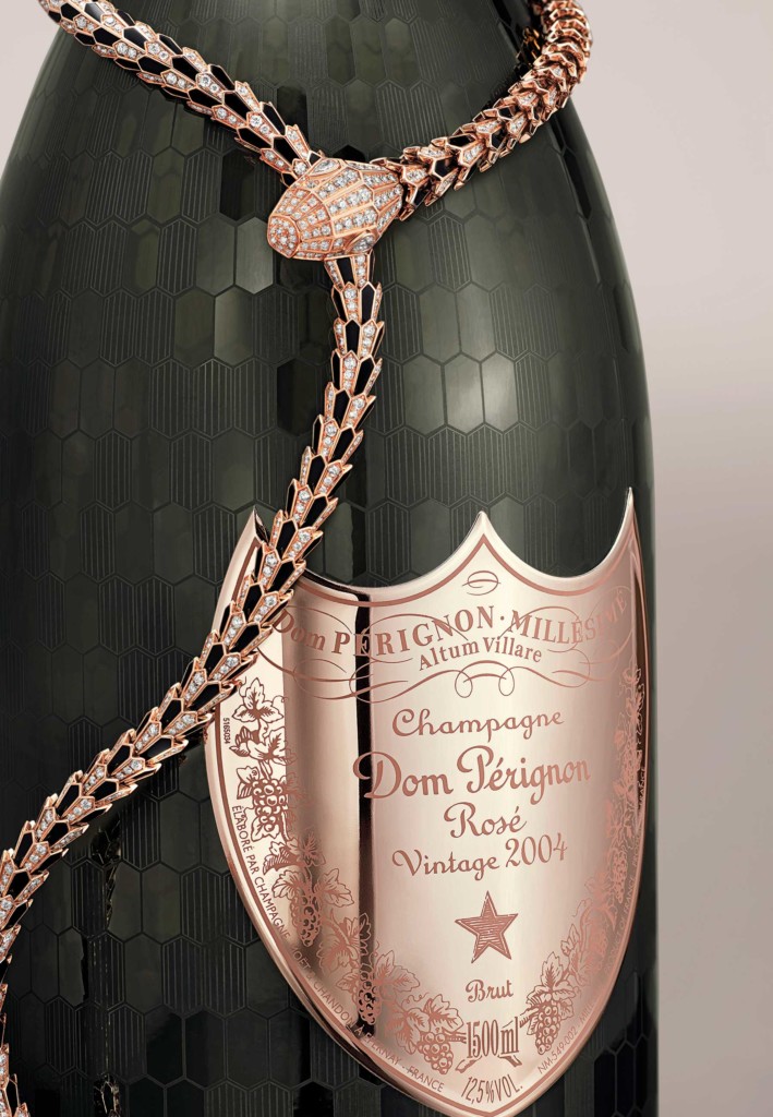 O colar Serpenti é acompanhado por uma caixa de três garrafas magnum. Cada uma delas está gravada com o padrão Bvlgari Serpenti, exaltando a emoção inigualável de experimentar o vinho. Apenas quatro Bvlgari Serpenti x Dom Pérignon Rosé Limited Editions serão criadas, disponíveis apenas sob demanda a partir de 2021, em Londres, Milão e Tóquio.
