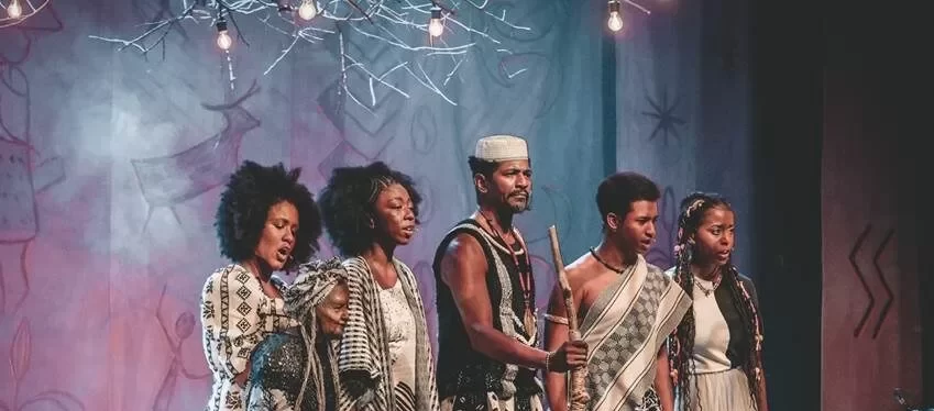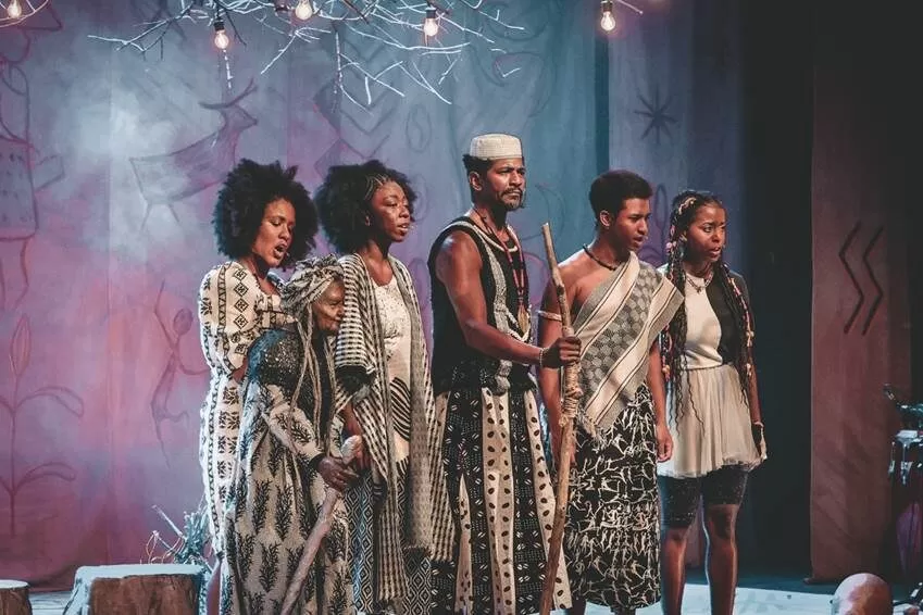 Com texto de Ricardo Gomes e Mariana Jaspe e direção artística de Arlindo Lopes, o espetáculo reúne música ao vivo, coreografias e elementos visuais inspirados em culturas africanas e afro-diaspóricas. O elenco conta com Gustavo Delayte, Caroll Badon, Alexandre Rosa Moreno, Ella Fernandes e Vanessa Pascale, vencedora do prêmio de melhor atriz pelo Centro Brasileiro de Teatro para a Infância e Juventude (CBTIJ) — acompanhados pelas musicistas Flávia Chagas e Geiza Carvalho.