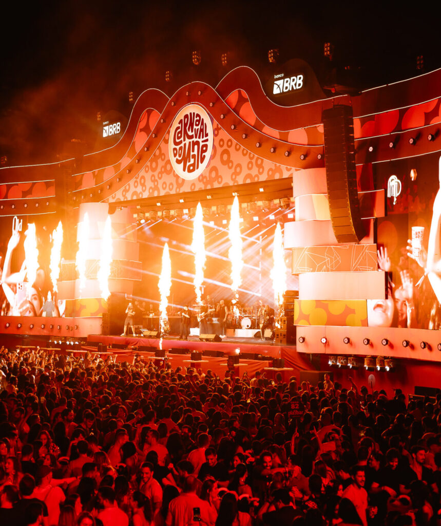 “O conceito nasceu da energia que essa época transmite, traduzida em elementos visuais. O palco é o ponto central, com uma estrutura que “explode” em direção ao público. Com o uso de luzes, ele se torna parte viva da festa. As formas orgânicas trazem traços de nossa arquitetura moderna, reforçando a identidade brasiliense”, explica Ana Carolina Falconi, sócia do Studio Traços, que assina a arquitetura do evento.