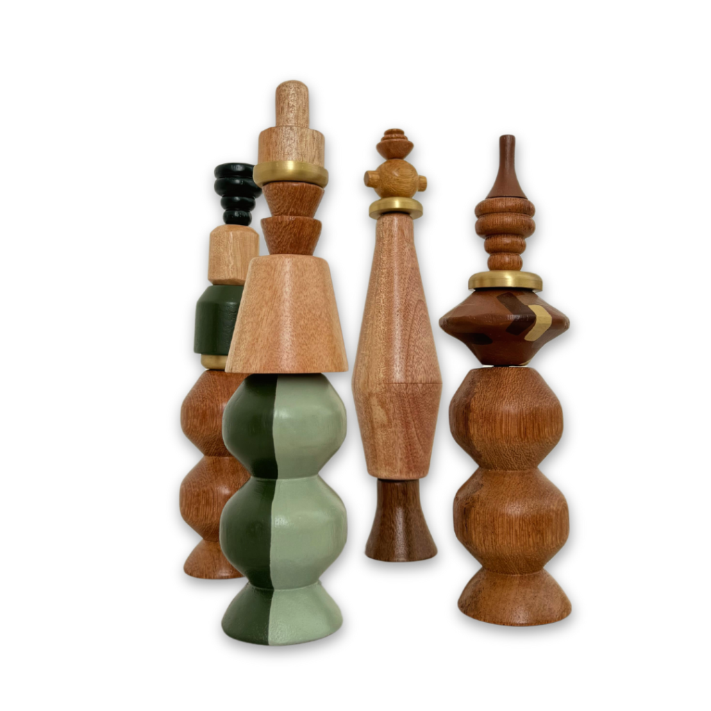 Outro ponto alto da coleção é a série Toys, uma criativa brincadeira com cores e formas. Feitas à mão com madeira de reflorestamento e materiais reciclados, as peças são exemplos de upcycling, demonstrando que sustentabilidade e design podem andar juntos, sem abrir mão da sofisticação.