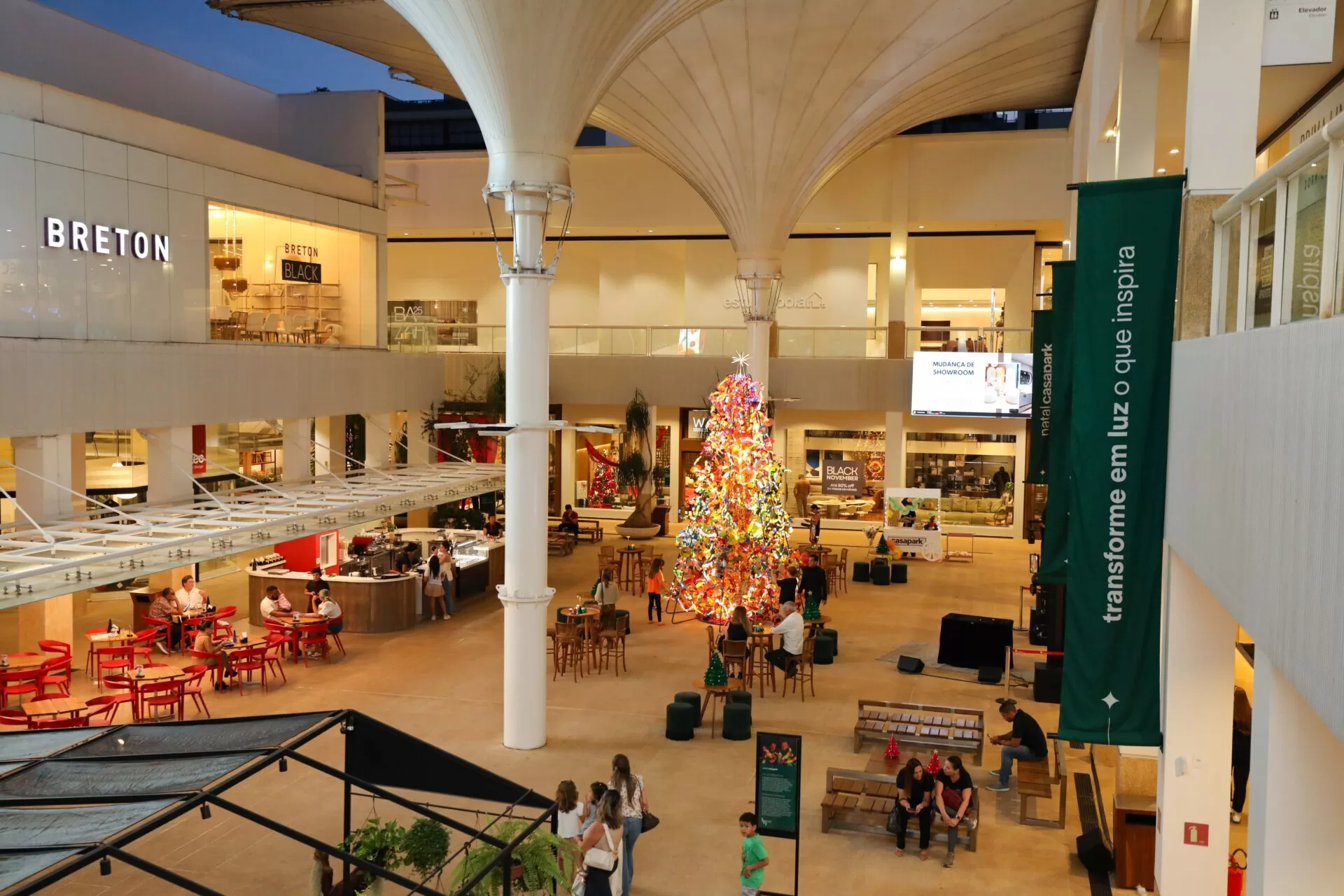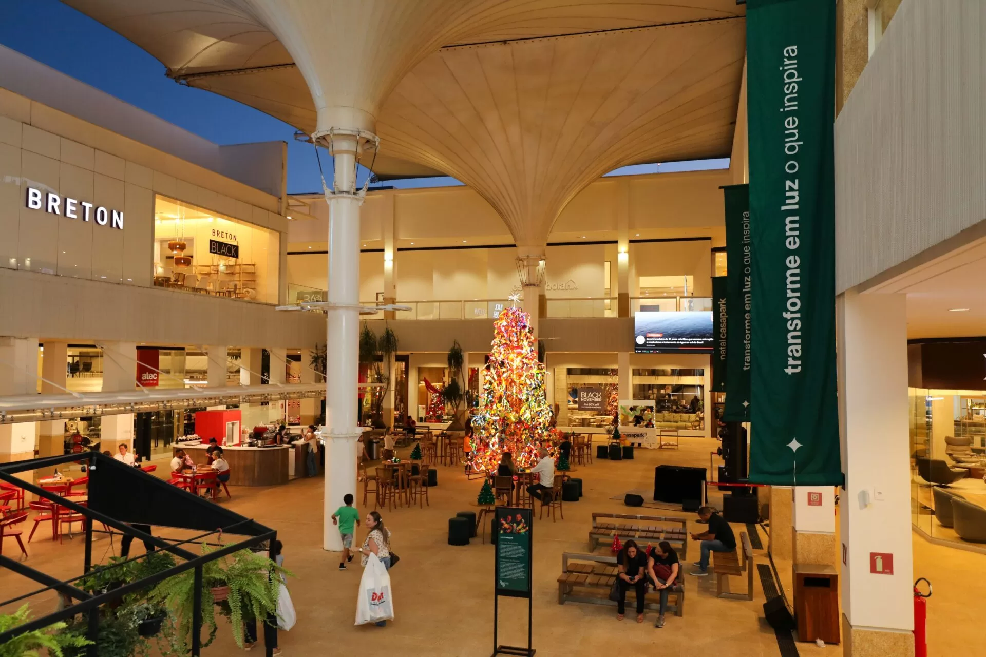 Em uma noite marcada por boas vibrações, o Casapark comemorou seus 25 anos com a inauguração da instalação natalina “Luz que transforma”, assinada pelo duo Pirilampos do Planeta, e com a abertura das Vitrines Decoradas, criadas por escritórios de arquitetura e design de interiores de Brasília. O evento, realizado na última quinta-feira, contou com estações gourmet, espumantes, pipoca, batata chips e apresentações musicais dos DJs Copypaste e de um quinteto que interpretou clássicos natalinos.