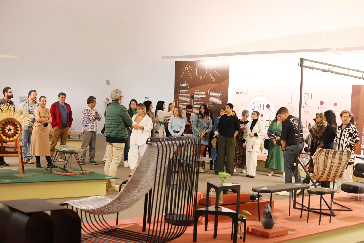 Cerca de 40 arquitetos e designers de interiores atenderam ao convite do Casapark Prime para visitar a mostra do Brasília Design Week em exibição na Sala 1 do Museu Nacional da República. A exposição é formada por seis mostras que abordam reflexões sobre identidade cultural, ancestralidade e inovação. Acompanhados de Pati Herzog, uma das curadoras da mostra, os profissionais puderam conhecer trabalhos de diversos designers e artistas visuais de Brasília e de outros estados do País, que em suas produções se relacionam de alguma maneira com o design, a artesania, a arte, a memória e a história de suas regiões.