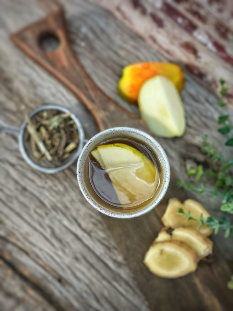 Quando começar a ferver coloque o gengibre, alho, canela e a maça, deixe ferver por 5 minutos;