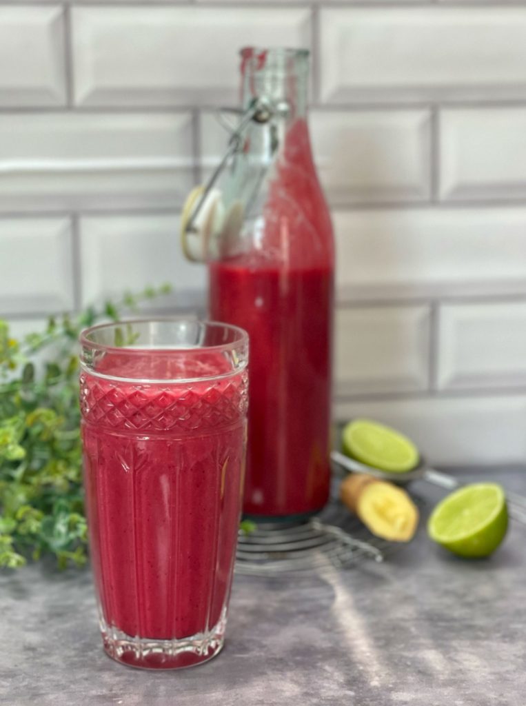 Deixe na geladeira por 1 hora e tome ao longo do dia.