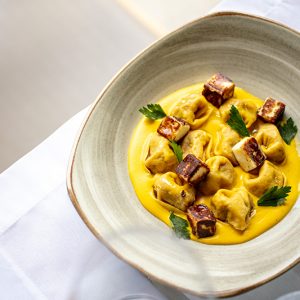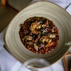 Outras opções são o Nhoque de banana-da-terra dourado com costelinha de leitoa desfiada e lardo de colonata (R$ 69); o Agnolotti, uma massa fresca recheada com polenta e brie, ragu de galinha d’angola e crocante de quiabo (R$ 67); Polvo braseado com cebola pérola e musseline de baroa com pequi (R$ 84); e a Barriga suína do do Tizzi marinada com cachaça, melaço de cana e creme de milho trufado (R$ 83).