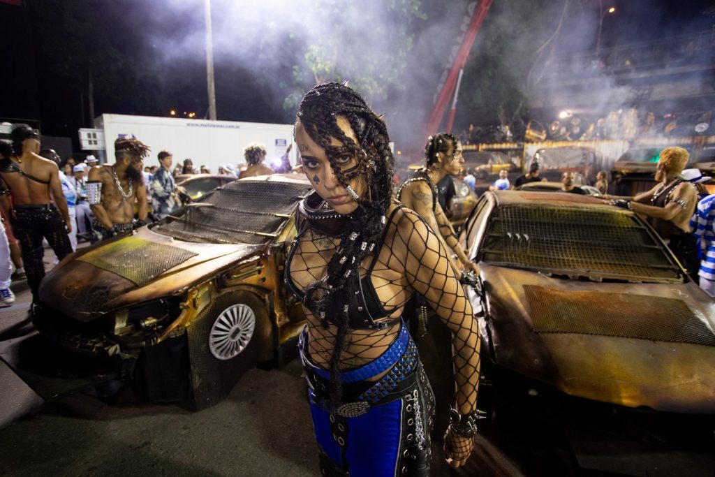 A comissão de frente da Escola foi assinada pelo estilista Francisco Costa pela Colcci. O grupo era formado por 28 componentes, sendo 10 Pomba Giras, 1 Exu, 9 membros da gangue dos negros e 9 da gangue dos latinos. Cinco modelagens de calças, todas exclusivas, depois foram customizadas pelo designer e finalizadas costureiras da Beija-Flor. De acordo com o diretor de marketing da Colcci, Daniel Mafra, foram feitas 20 peças e aplicadas 30 mil ilhoses.