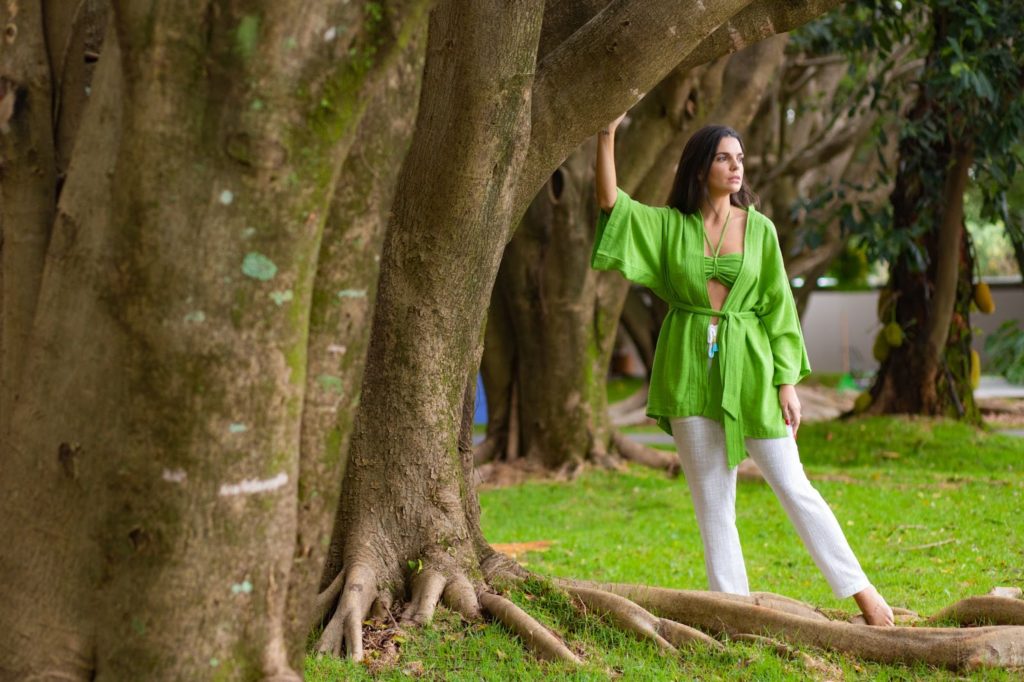 Com cores da moda que remetem ao clima tropical como o branco, verde, coral e estampa listrada, todas as peças foram feitas com material 100% sustentável e visam o conforto de quem vesti-las.