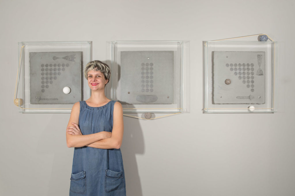 Adriana Vignoli (1981) vive e trabalha em Brasília. Sua pesquisa envolve fotografia, desenho e escultura. Seu processo criativo parte da construção de objetos geométricos dispostos no espaço em estruturas de tensão e equilíbrio. Ela propõe obras que têm vida própria e se modificam lenta e continuamente. Interessa a ela provocar o observador a experimentar o tempo como um fluxo contínuo, indissociável em passado, presente e futuro. Em 2021, Adriana Vignoli participa da Residência Artística Internacional no Pivô em São Paulo. Em 2020 foi selecionada para integrar a Residência Artística Internacional no Hangar em Lisboa, Portugal, e recebeu o Prêmio Nacional de Exposições do TCU em Brasília. Em 2019, participou de uma exposição coletiva internacional na Fundación Klemm, Buenos Aires. Em 2016, foi artista indicada para o Prêmio PIPA. Recebeu o Prêmio Nacional da FUNARTE de Arte Contemporânea, 2015. Entre 2013 e 2014, expôs na Nassauischer Kunstverein de Wiesbaden e na Hochschule für Bildende Künste Dresden.