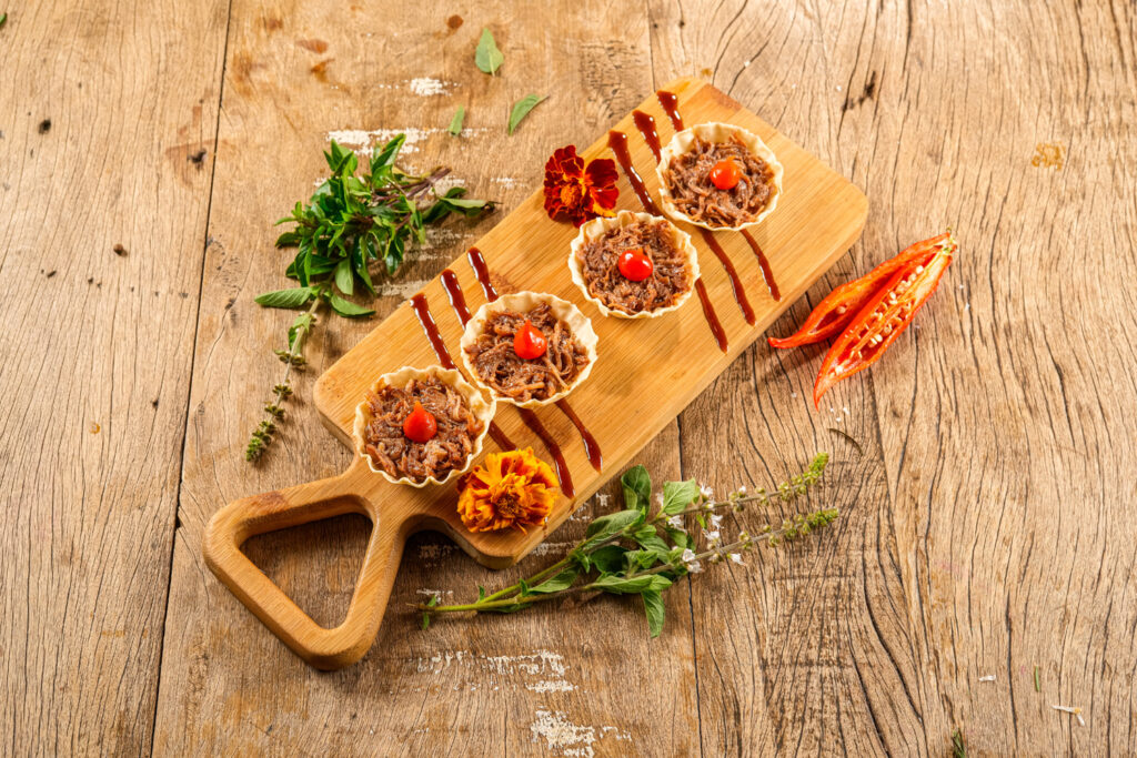 Cestinhas crocantes recheadas com suculenta costelinha desfiada e um toque especial de molho barbecue (R$49,90)