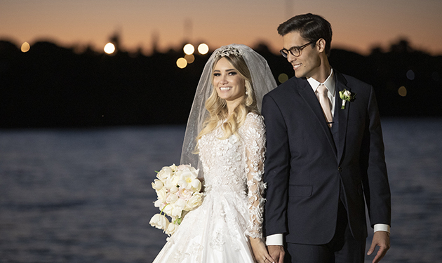 Juliana Marques e Leonardo Bosque celebraram casamento dos sonhos ao pôr do sol às margens do Lago Paranoá com cerimonial de César Serra