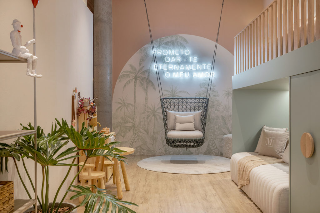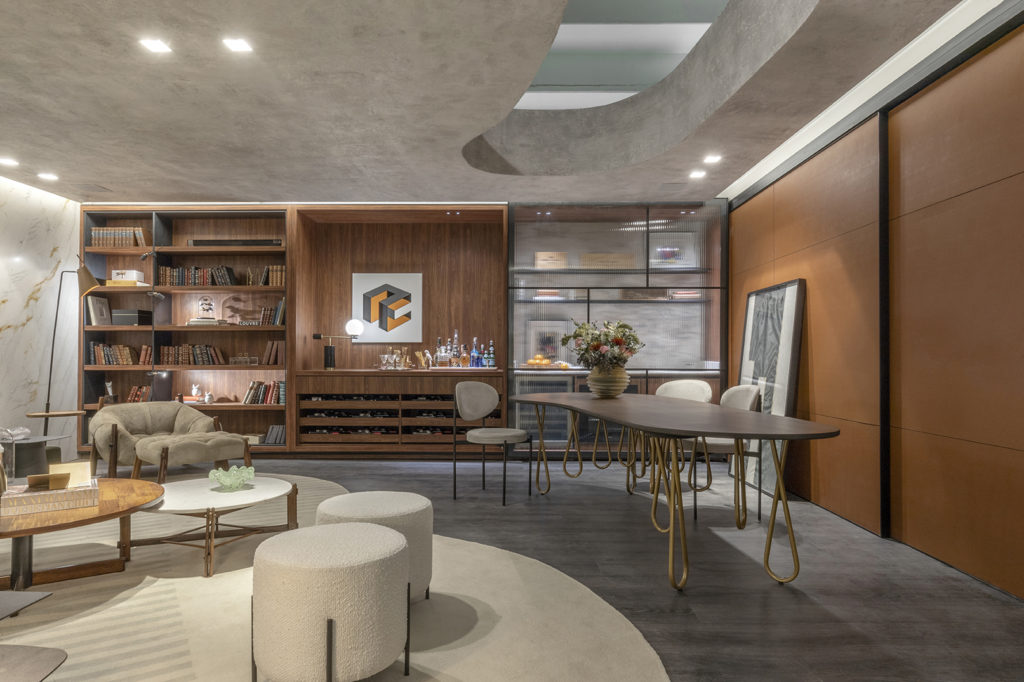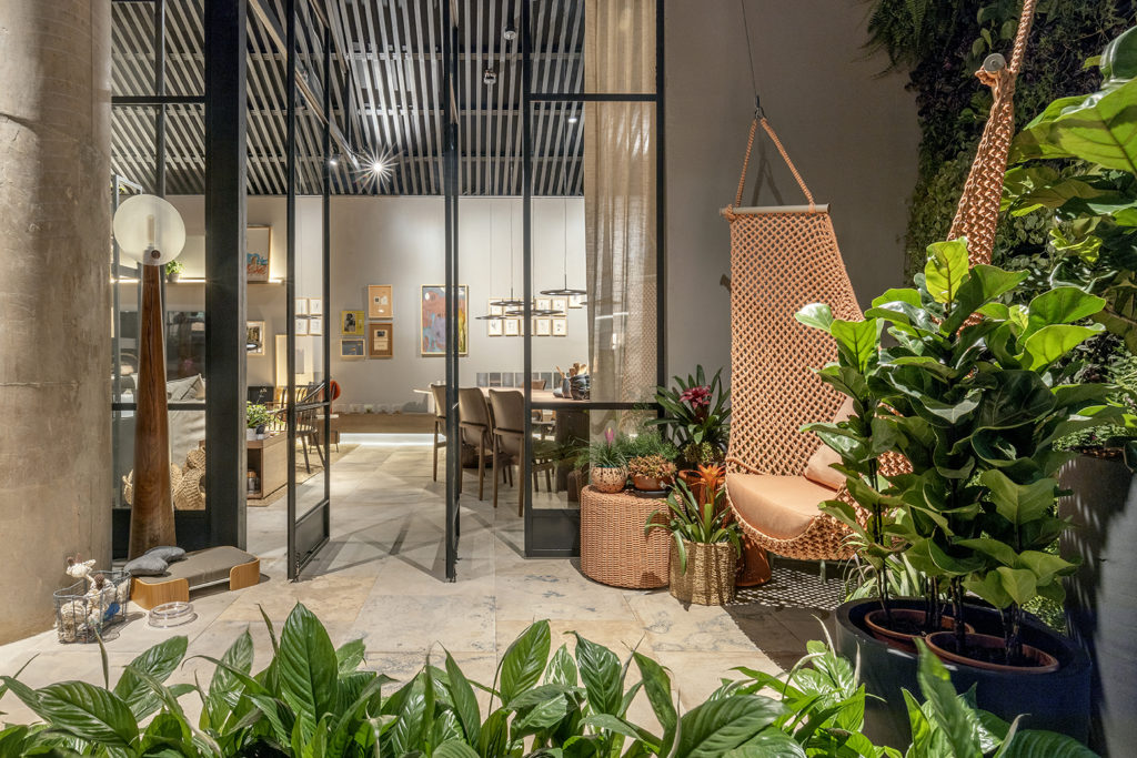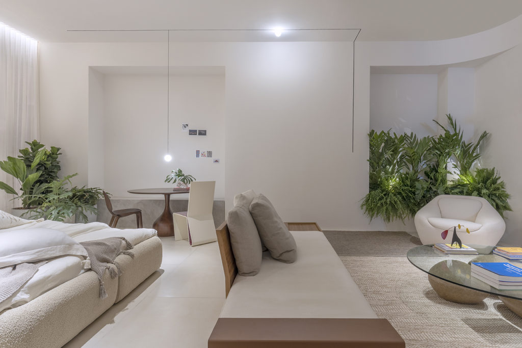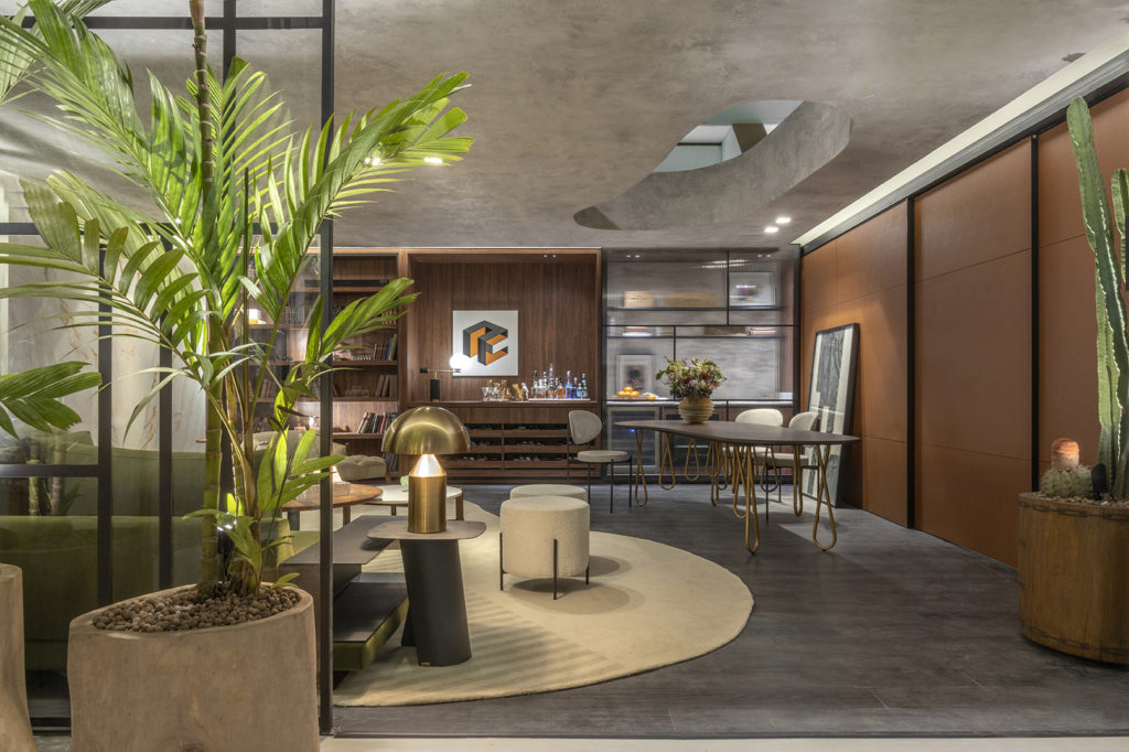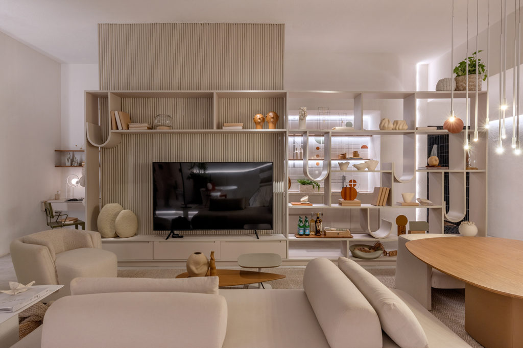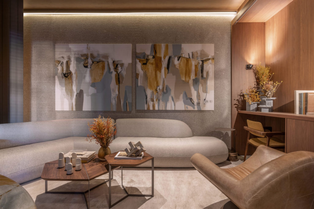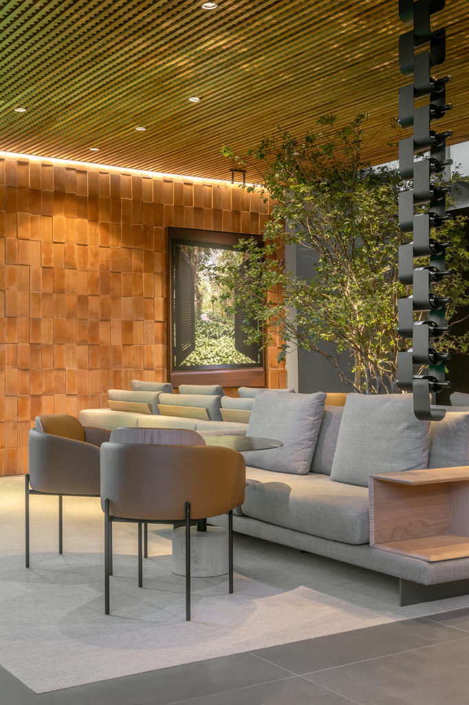 Após a participação no Salone del Mobile Milano de 2022, os escritórios CK Arquitetura e Olzi Arquitetura trouxeram as tendências para a concepção do espaço de 72,62m². Linhas curvas, visual cool e estética clean dão o tom do ambiente, que conta com texturas rústicas, painel de azulejaria desenhado pelo designer Wilson Romão para o espaço, tubos em pvc e jardim vertical de plantas naturais. Romão assina também a Cadeira Baru, exibida na “Poesia do Cotidiano”, principal exposição do Brasil durante a Semana de Design de Milão, e que tem uma versão exclusiva para a mostra, uma curadoria de Bruno Simões. Obras dos artistas plásticos Gabriel Petribu e Eduardo Garcia completam o ambiente.