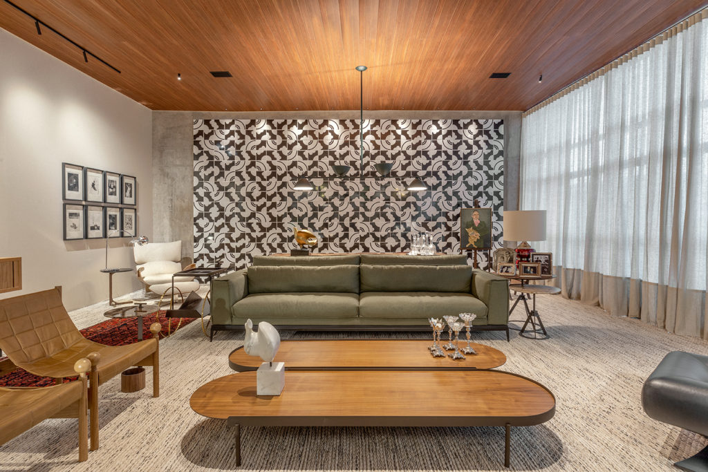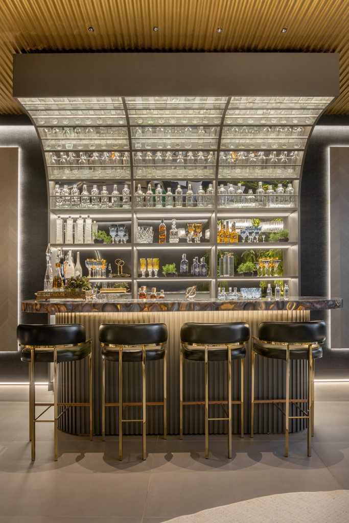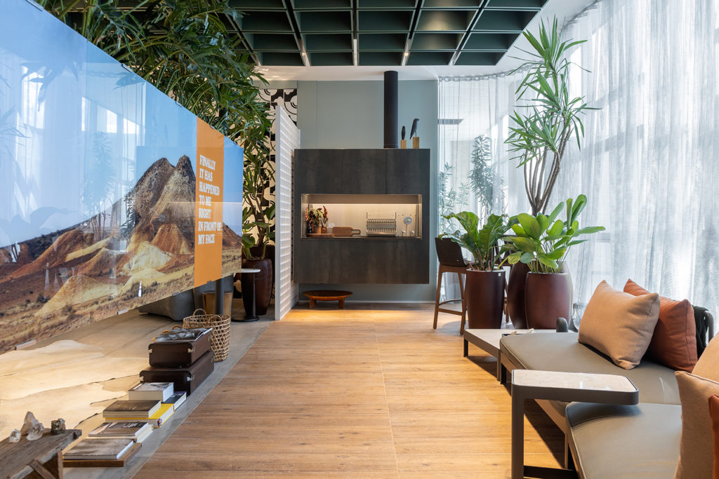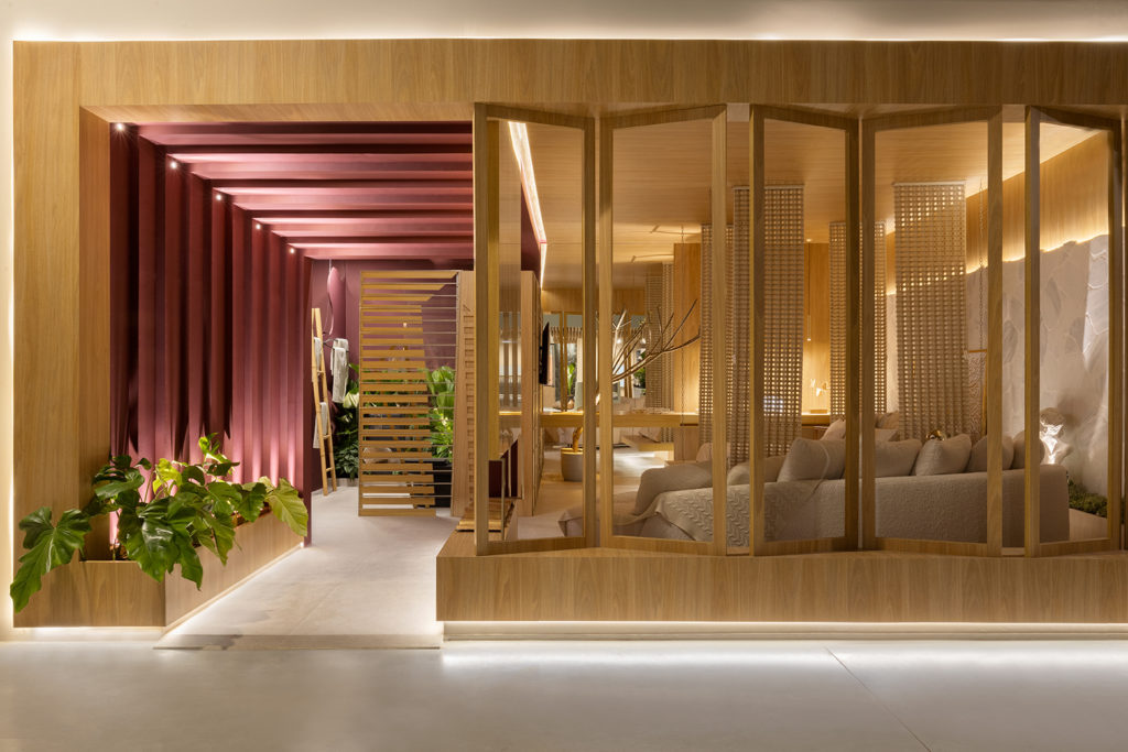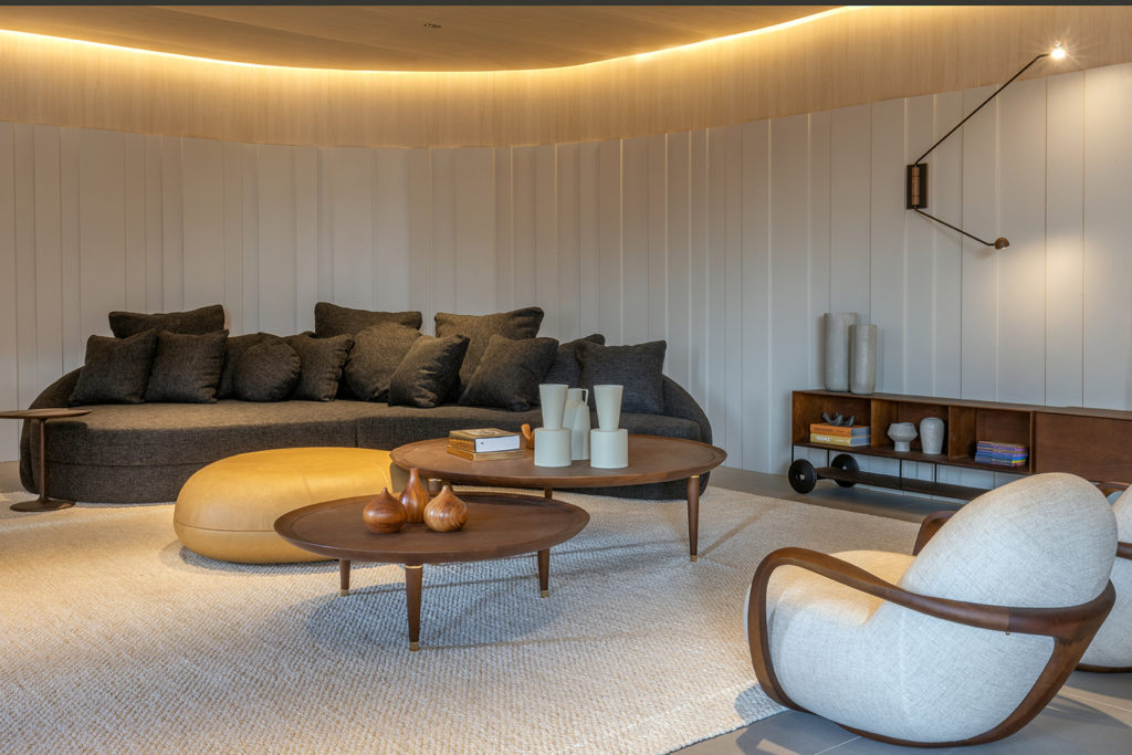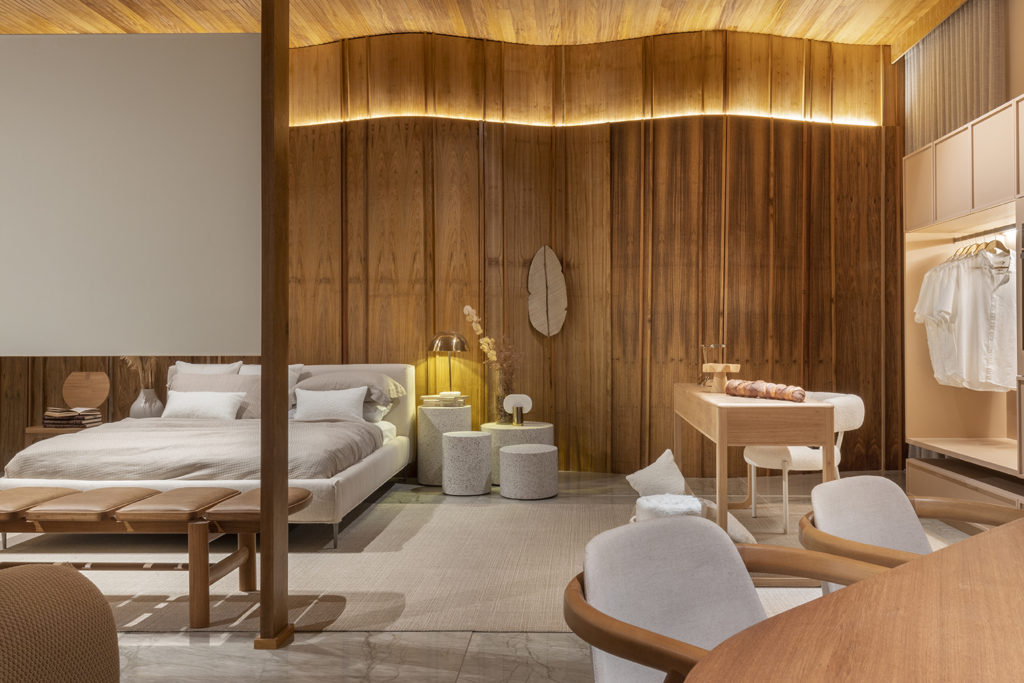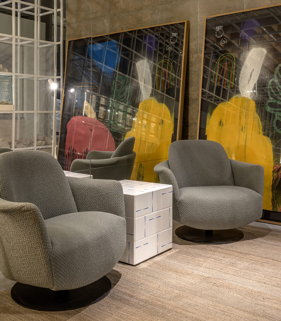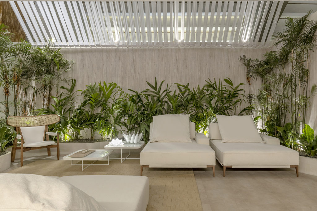 Após a participação no Salone del Mobile Milano de 2022, os escritórios CK Arquitetura e Olzi Arquitetura trouxeram as tendências para a concepção do espaço de 72,62m². Linhas curvas, visual cool e estética clean dão o tom do ambiente, que conta com texturas rústicas, painel de azulejaria desenhado pelo designer Wilson Romão para o espaço, tubos em pvc e jardim vertical de plantas naturais. Romão assina também a Cadeira Baru, exibida na “Poesia do Cotidiano”, principal exposição do Brasil durante a Semana de Design de Milão, e que tem uma versão exclusiva para a mostra, uma curadoria de Bruno Simões. Obras dos artistas plásticos Gabriel Petribu e Eduardo Garcia completam o ambiente.
