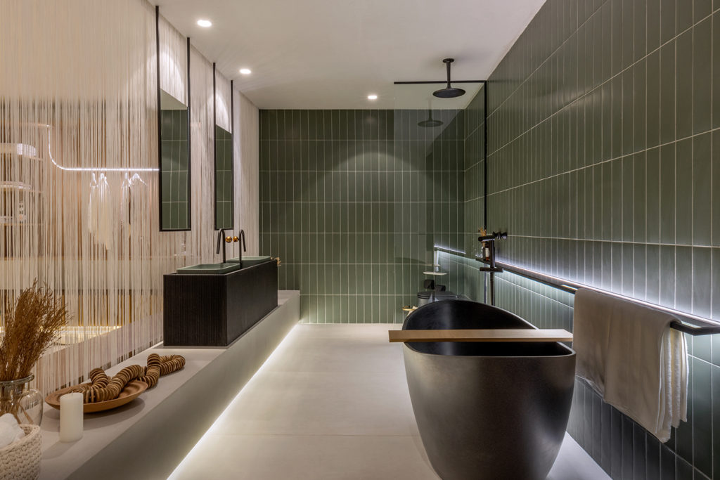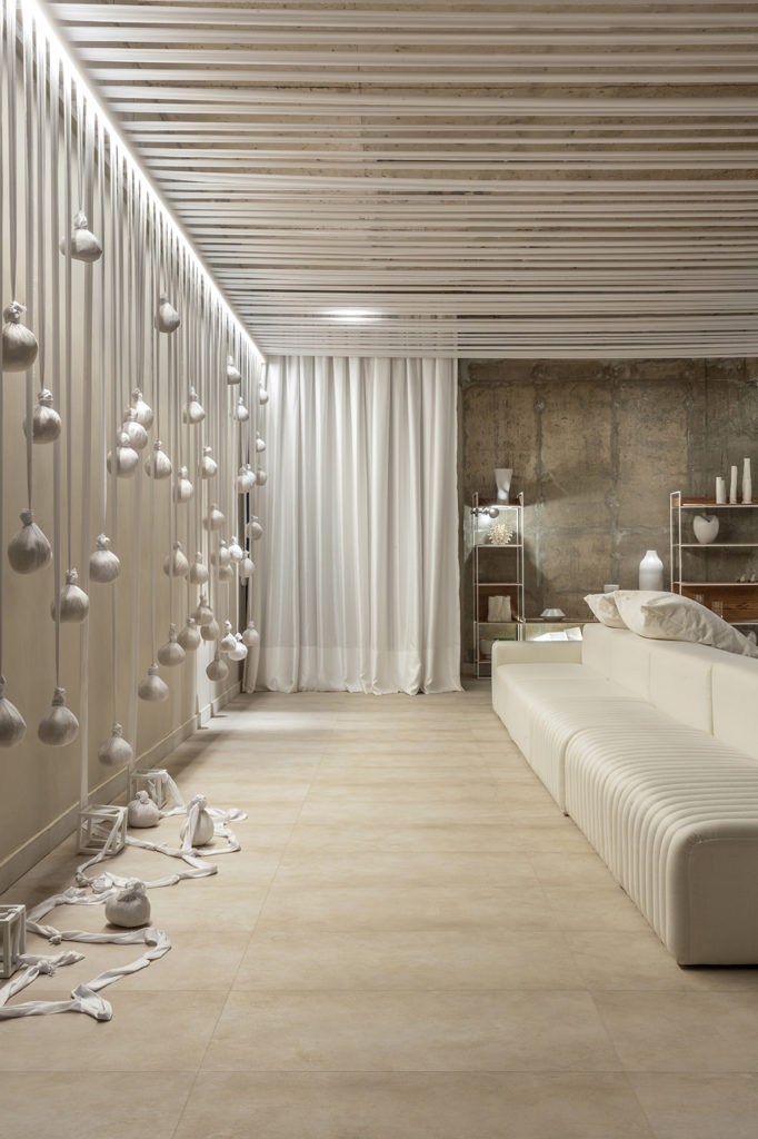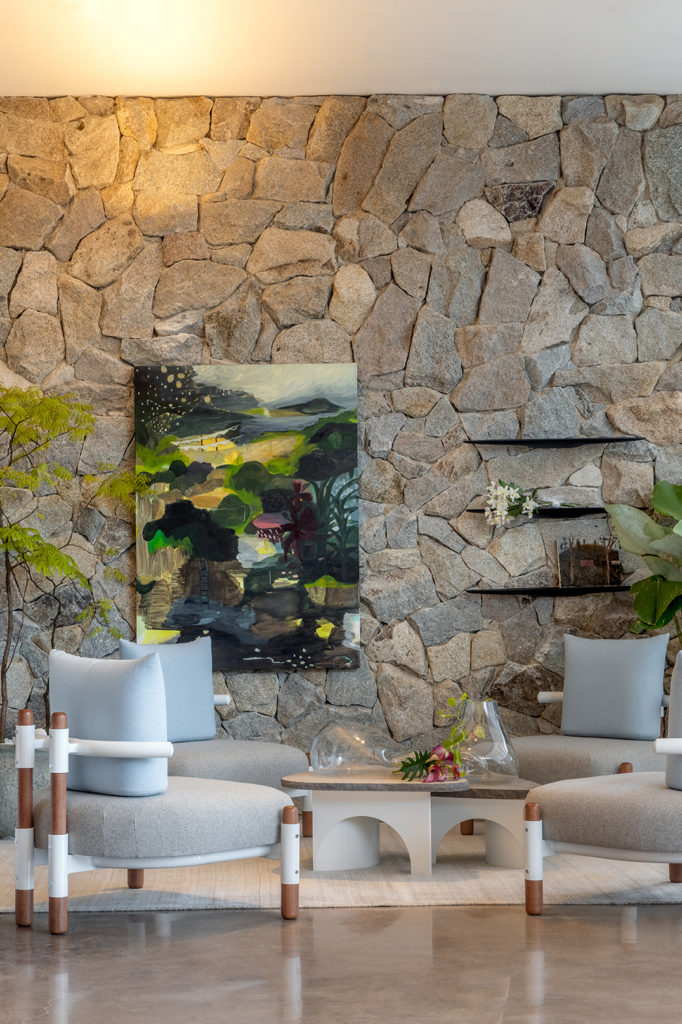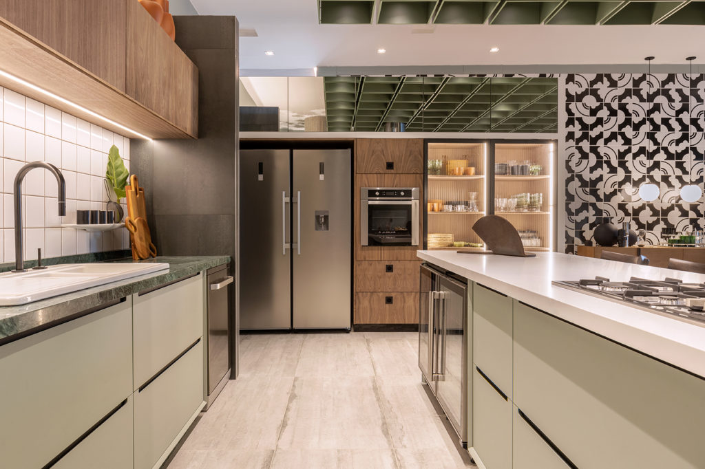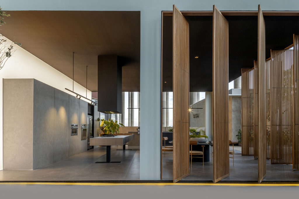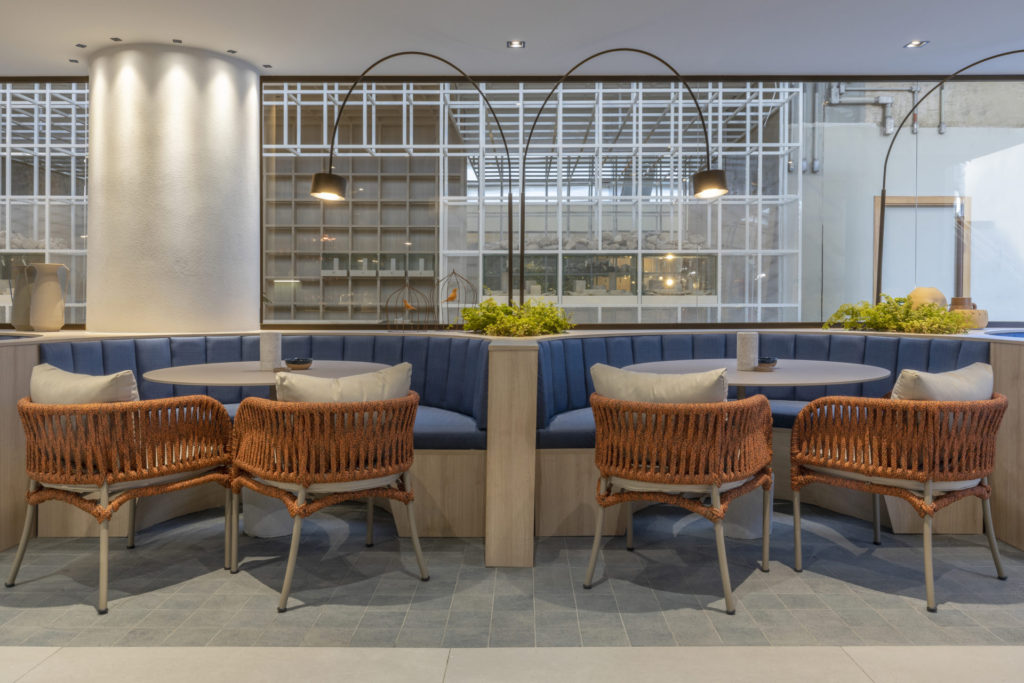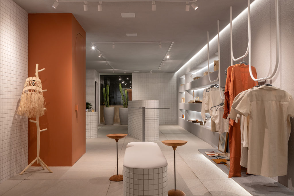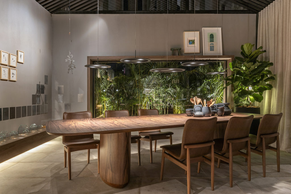 Após a participação no Salone del Mobile Milano de 2022, os escritórios CK Arquitetura e Olzi Arquitetura trouxeram as tendências para a concepção do espaço de 72,62m². Linhas curvas, visual cool e estética clean dão o tom do ambiente, que conta com texturas rústicas, painel de azulejaria desenhado pelo designer Wilson Romão para o espaço, tubos em pvc e jardim vertical de plantas naturais. Romão assina também a Cadeira Baru, exibida na “Poesia do Cotidiano”, principal exposição do Brasil durante a Semana de Design de Milão, e que tem uma versão exclusiva para a mostra, uma curadoria de Bruno Simões. Obras dos artistas plásticos Gabriel Petribu e Eduardo Garcia completam o ambiente.
