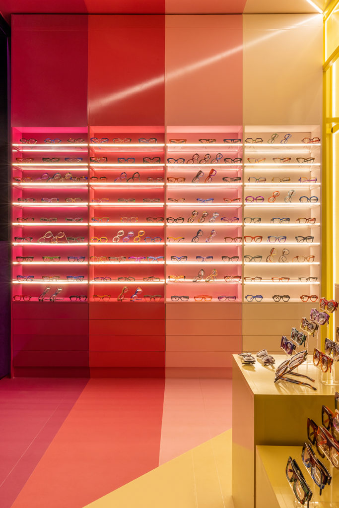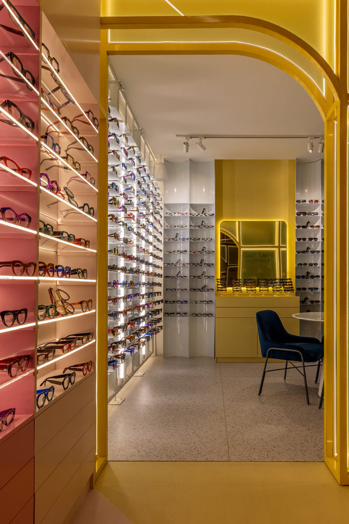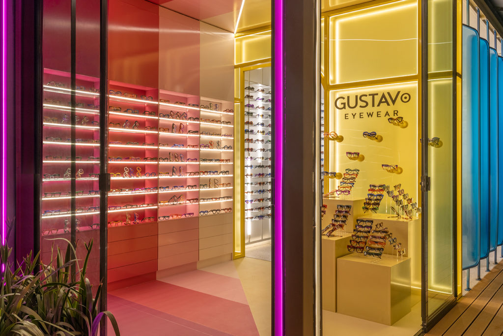 O ambiente de 18m² de construção modular acompanha uma tendência comercial de pop-up store, que gera conexão com o público em uma proposta de espaços mais compactos e soluções arquitetônicas mais ousadas. A marca que ocupará o local é a Gustavo Eyewear, com óculos pintados à mão, quase todos exclusivos e de tiragem