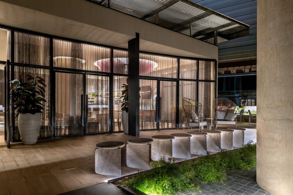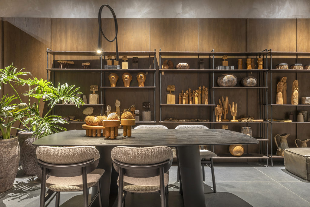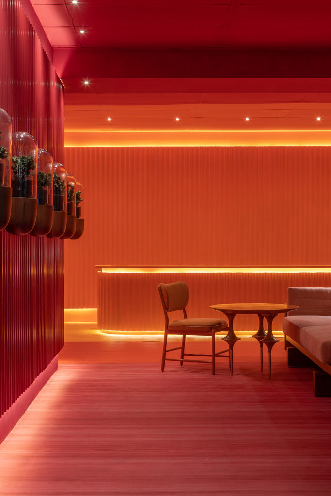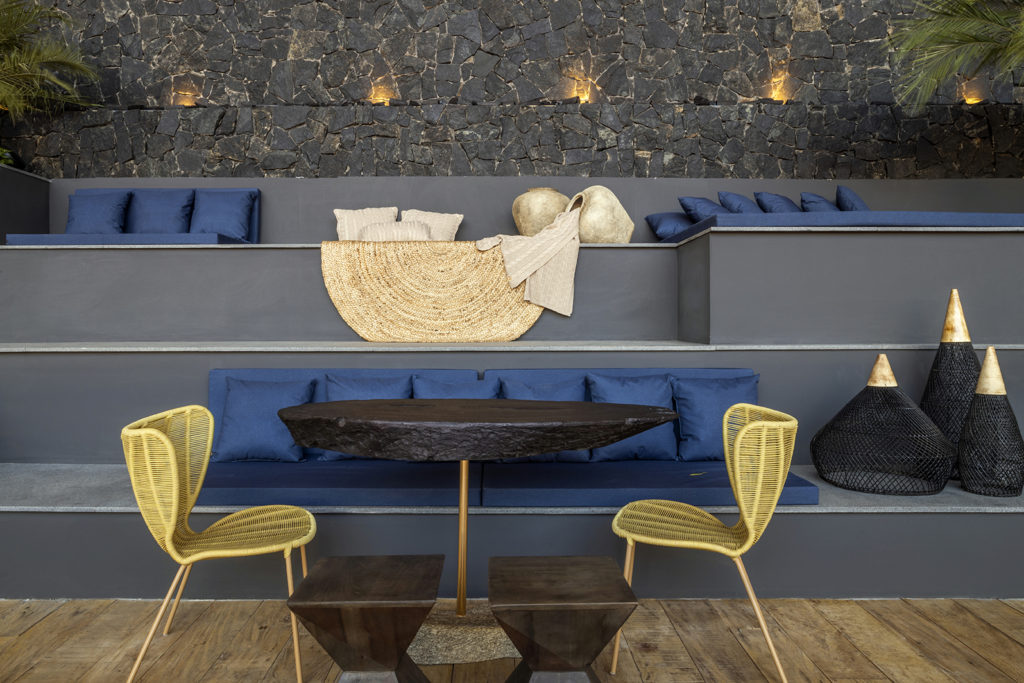 O ambiente projetado pelo arquiteto Miguel Gustavo foi inspirado em temas étnicos com ideia sensorial, onde o visitante terá impacto ao entrar no espaço devido aos materiais naturais utilizados. Madeira e pedra predominam no espaço, junto com a utilização de cores quentes e iluminação impactante. Com 130m², o projeto conta com uma bancada de dormentes vindos de Minas Gerais e biribas suspensas dividindo o espaço, e um espelho d’água com cubas amontoadas que formam uma escultura.