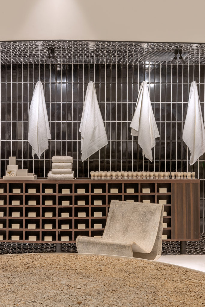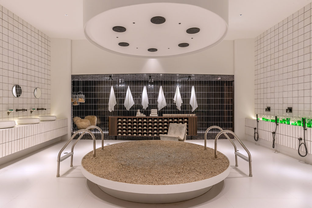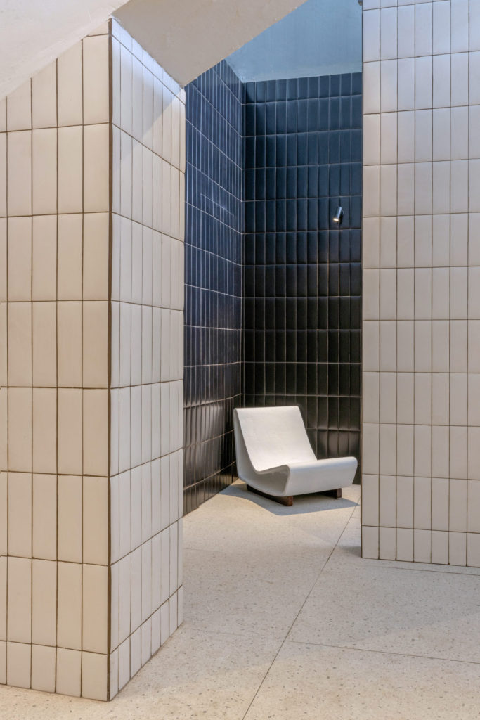 Inspirado nos banhos turcos e marroquinos e na arquitetura pré-modernista finlandesa, o arquiteto Eduardo Brito criou uma sala de banho coletivo de 56m². Sua referência foi a piscina do hotel Lutetia, em Saint Germain, em Paris. A ideia foi criar um ambiente onde o público pudesse compartilhar o momento íntimo, uma subversão da ideia de banho como atividade particular. Com contraste entre o claro e escuro, no espaço destacam-se a automação para gerar ambientação luminotécnica e sonora do ambiente, a Poltrona Loop Chair desenhada por Willy Guhl e objetos relacionados a banho, ao elemento água e tudo que remeta à limpeza corporal.